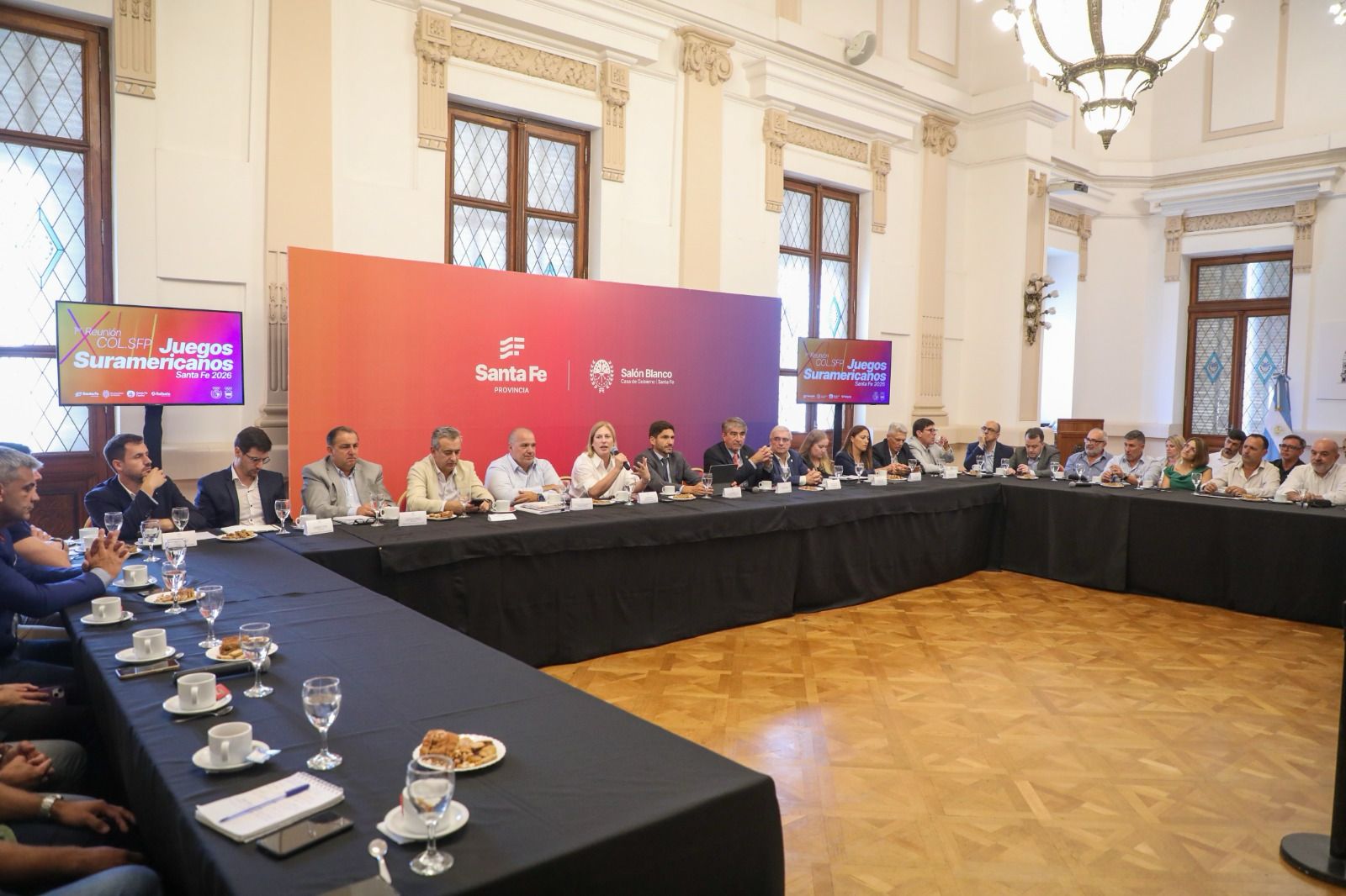 De la reunión participaron la vicegobernadora Gisela Scaglia; los ministros de Igualdad y Desarrollo Humano, Victoria Tejeda; de Educación, José Goity; y de Gobierno e Innovación Pública, Fabián Bastia; el presidente del Comité Olímpico Argentino y vicepresidente 1° de Odesur, Mario Moccia; los secretarios provinciales de Vinculación Institucional, Julián Galdeano; y de Deportes, Flavia Padin; y los intendentes de Rosario, Pablo Javkin; de Santa Fe, Juan Pablo Poletti; y de Rafaela, Leonardo Viotti, entre otros.