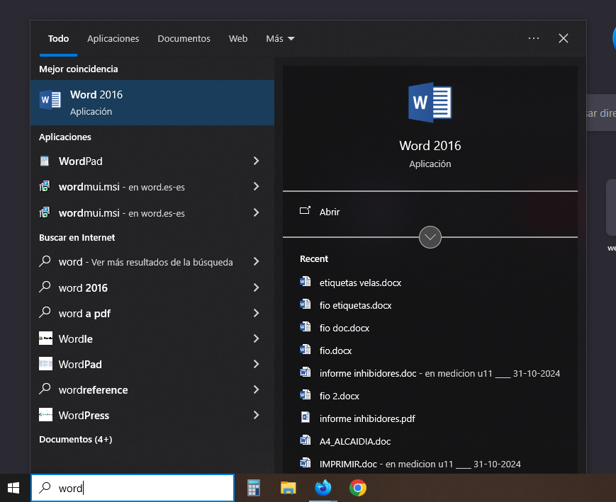 En definitiva, esta herramienta es especialmente útil para buscar programas, ya que, aunque el archivo ejecutable del programa no se llame como hemos escrito, lo encuentra. Por ejemplo, nos encuentra el programa Word.