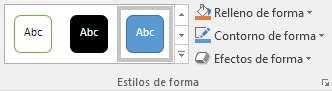 Para abrir el panel de Formato de forma hay que hacer clic en el botón de la esquina inferior derecha del grupo Estilos de forma.