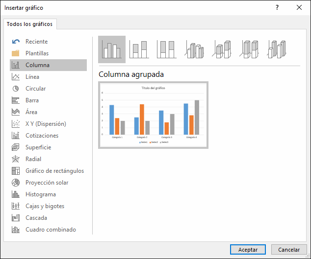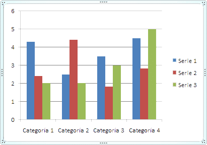 bastará hacer clic en cada casilla e introducir nuevos datos y nombres para las series y categorías. El gráfico se dibujará automáticamente a