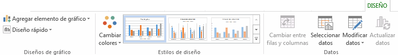 También aparece la pestaña Diseño desde la que podrá indicar muchos de las opciones de presentación del gráfico, como estilos de diseño, cambiar colores, etc.