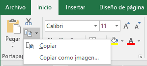 El ícono Copiar tiene opciones, a las que se puede acceder haciendo clic en la flecha derecha del ícono. Si elige Copiar como imagen,