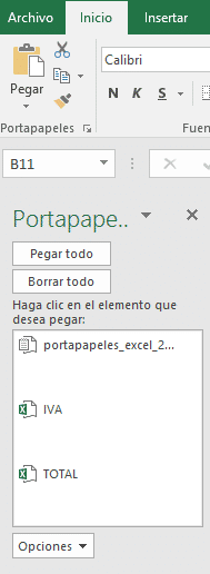Para pegar uno de los elementos guardados en el portapapeles, hacer clic sobre éste.