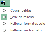 Si en las celdas a copiar no hay fórmulas sino valores constantes como fechas o series de números, Excel rellenará las nuevas celdas continuando la serie.