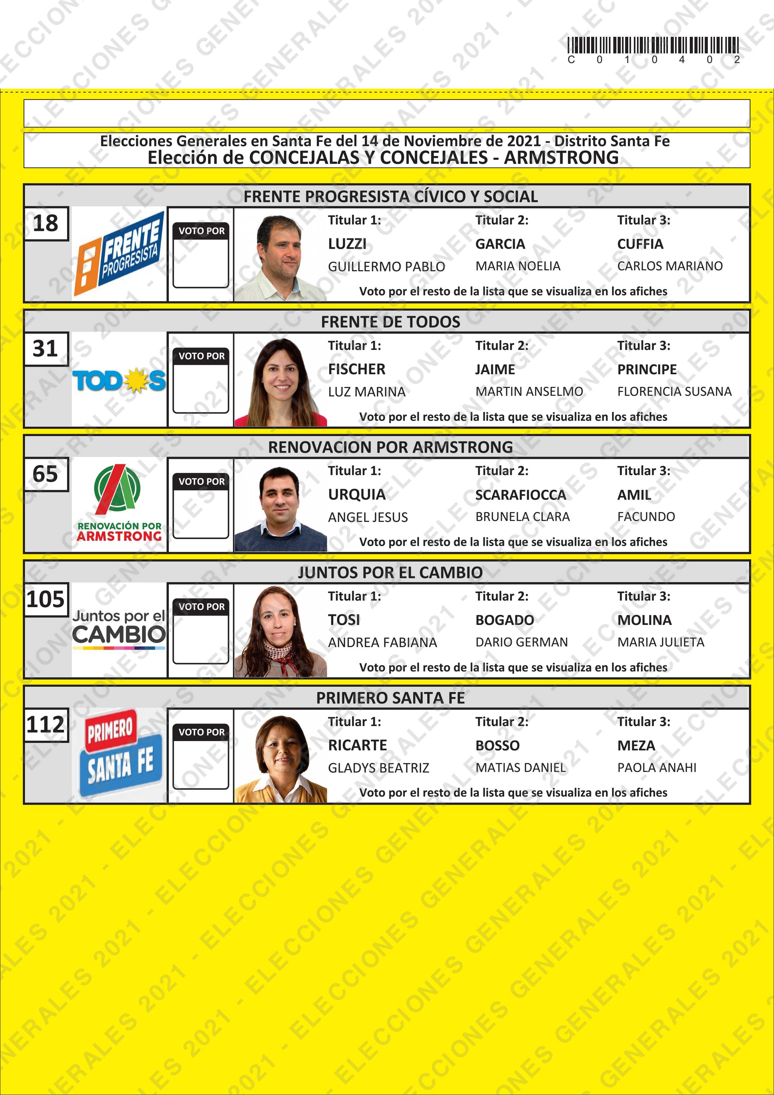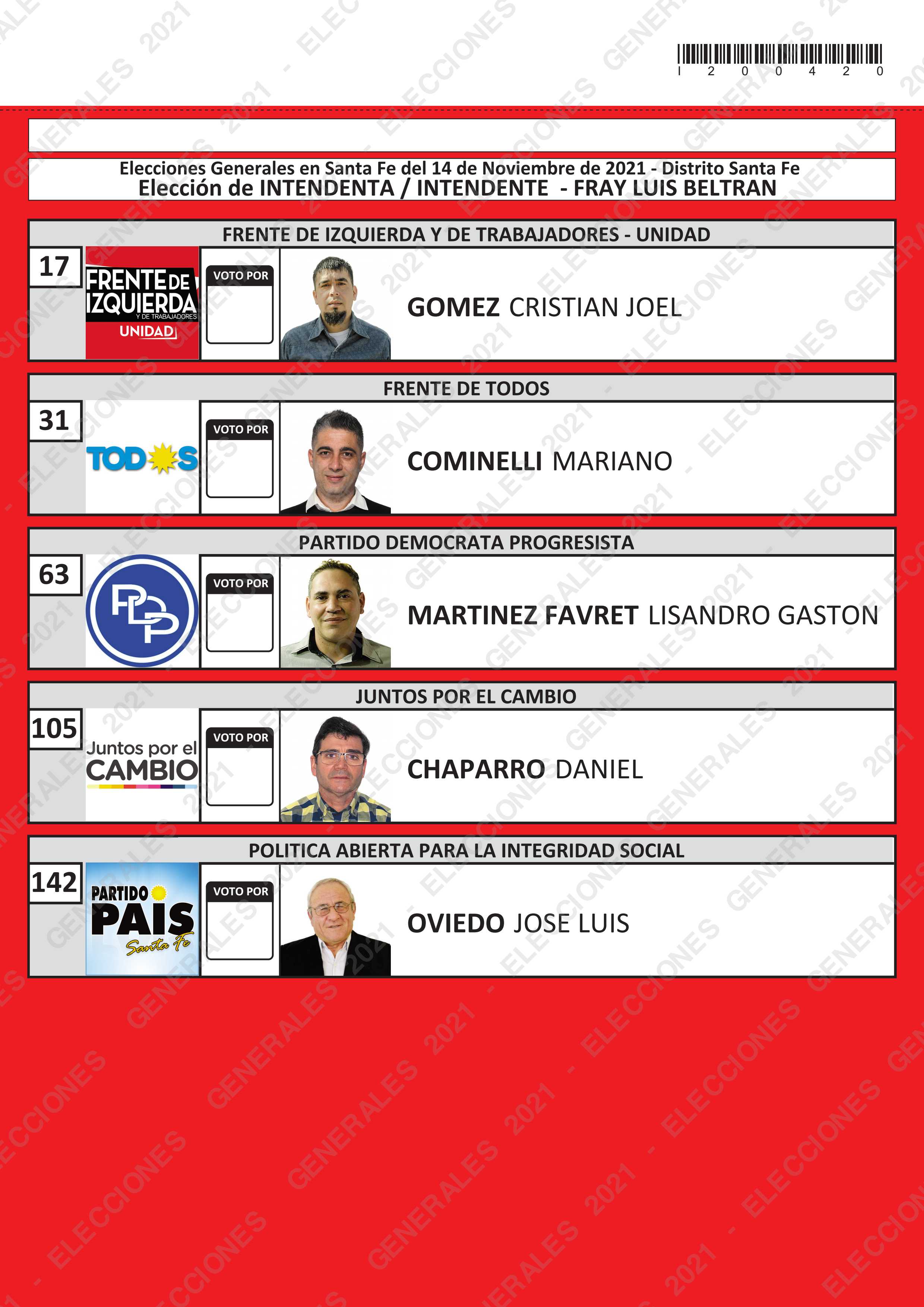INTENDENTE / CONCEJAL / MIEMBRO COMUNAL