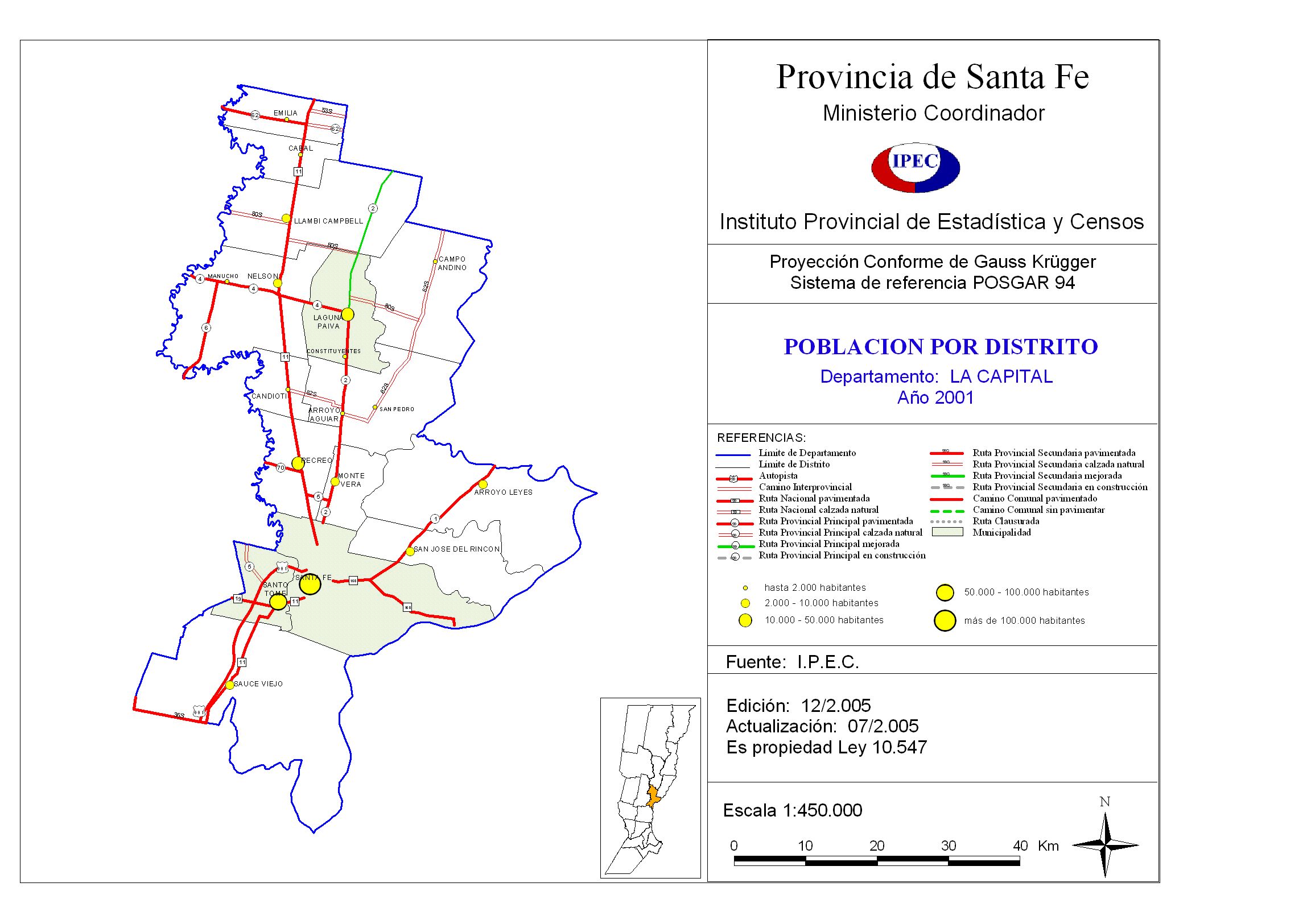 Población por distrito. Departamento La Capital. Año 2001