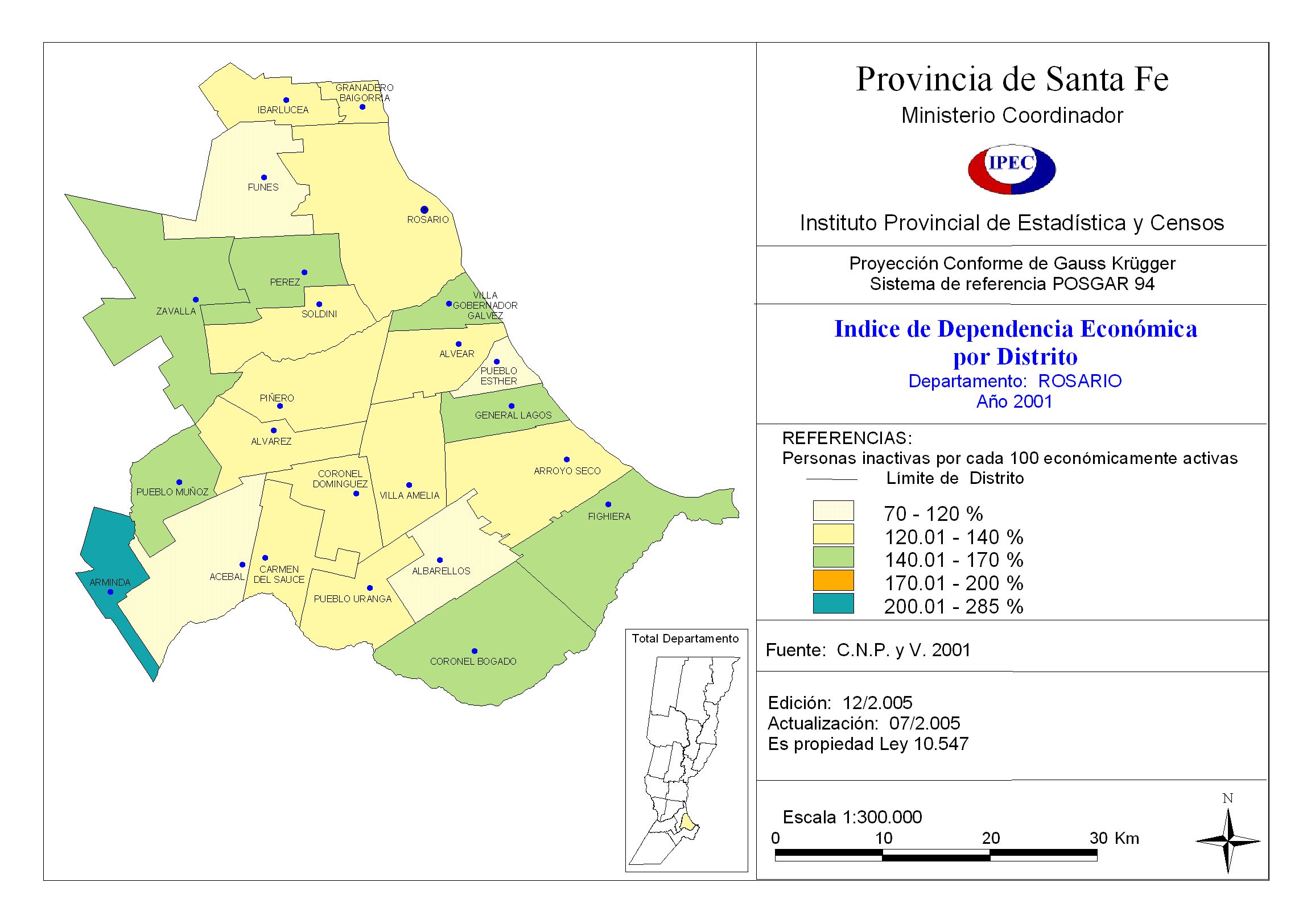 Indice de Dependencia Económica por Distrito. Departamento Rosario. Año 2001