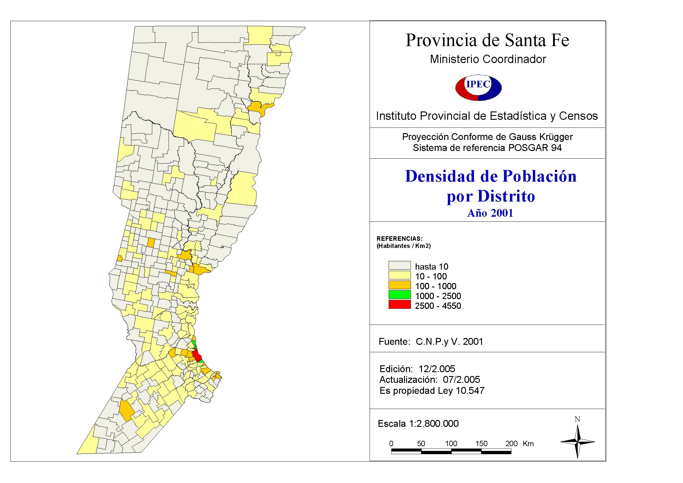 Densidad de población por distrito. Provincia Santa Fe. Año 2001