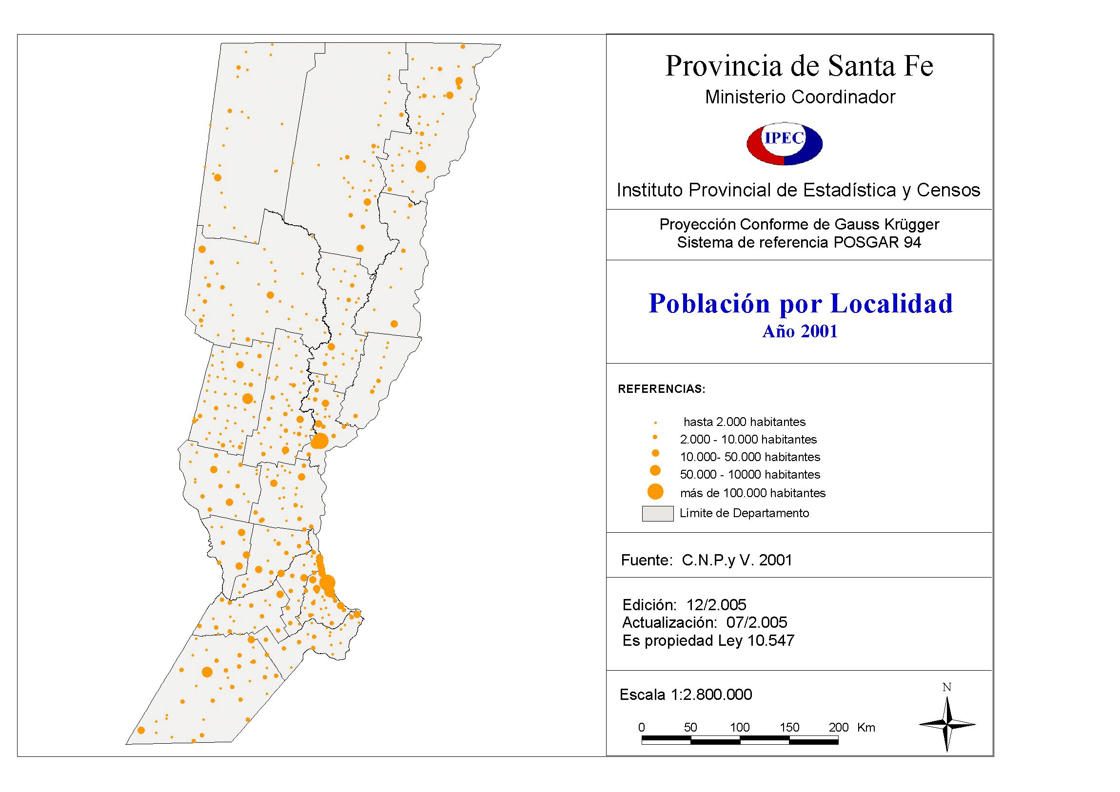 Población por localidad. Provincia Santa Fe. Año 2001