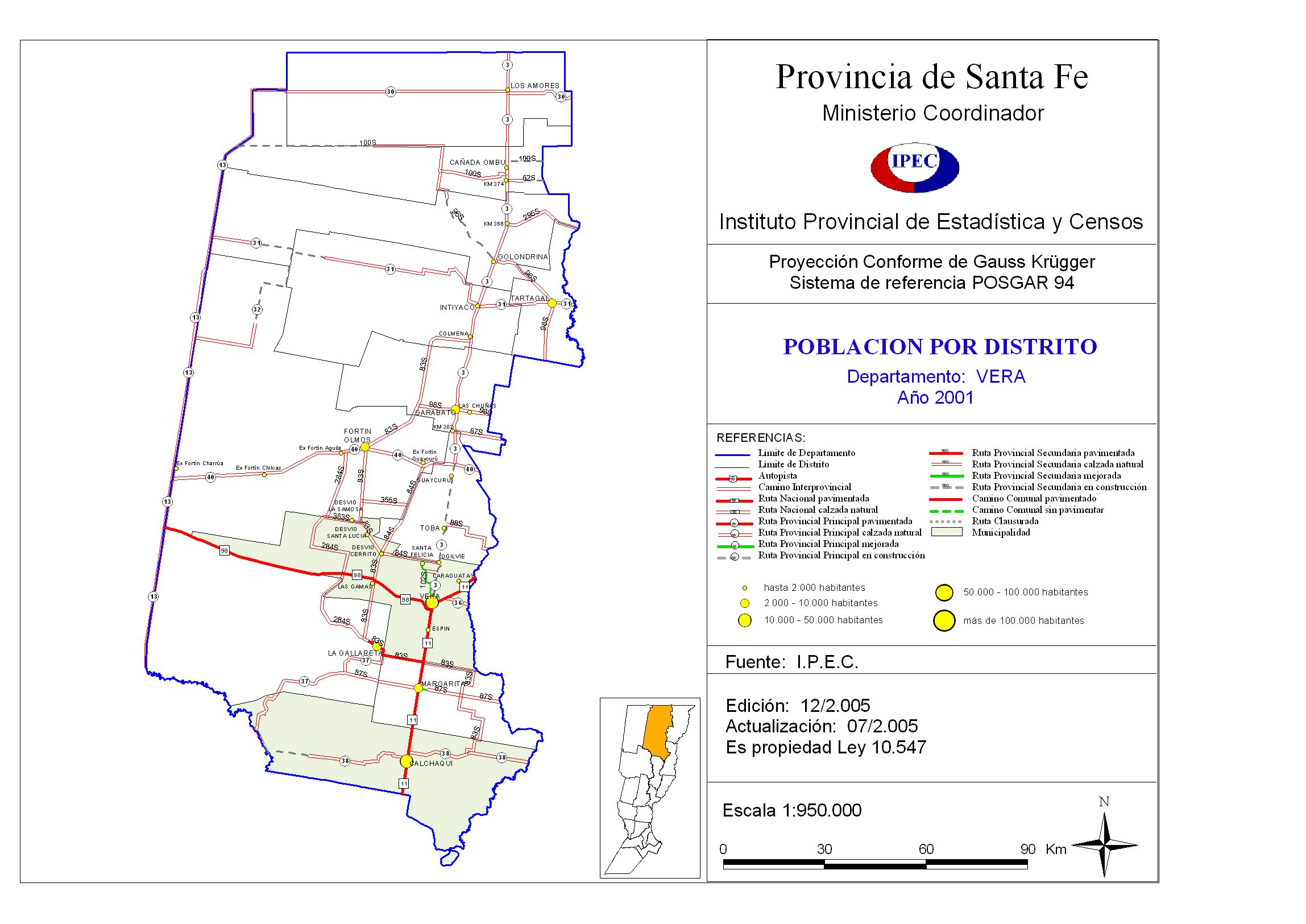 Estructura de la Población según Censo Nacional de Población 2001. Departamento Vera