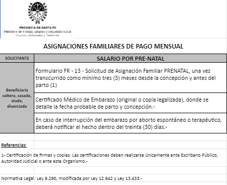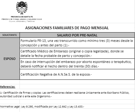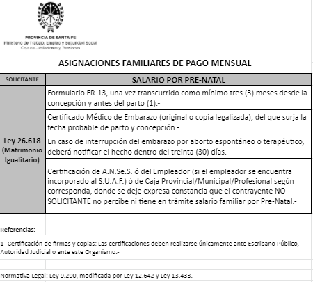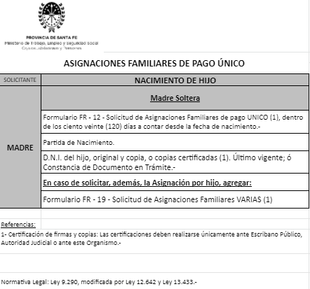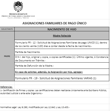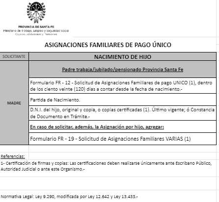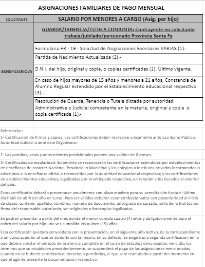| 26 | Guarda | Beneficiario/a | GUARDA/TENENCIA/TUTELA CONJUNTA: Contrayente no solicitante trabaja/jubilado/pensionado Provincia Santa Fe