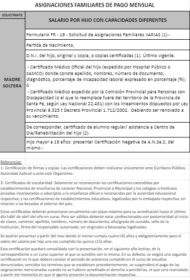 | 69 | Hijo con capacidades diferentes | Padre | Madre trabaja/jubilada/pensionada Provincia de Santa Fe |
