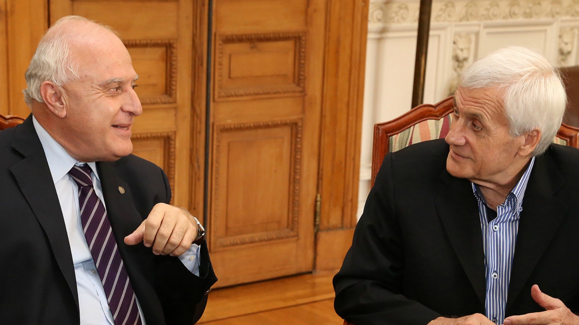 F1 – El gobernador Lifschitz y el secretario general de la CGT a nivel nacional, Antonio Caló durante la reunión.