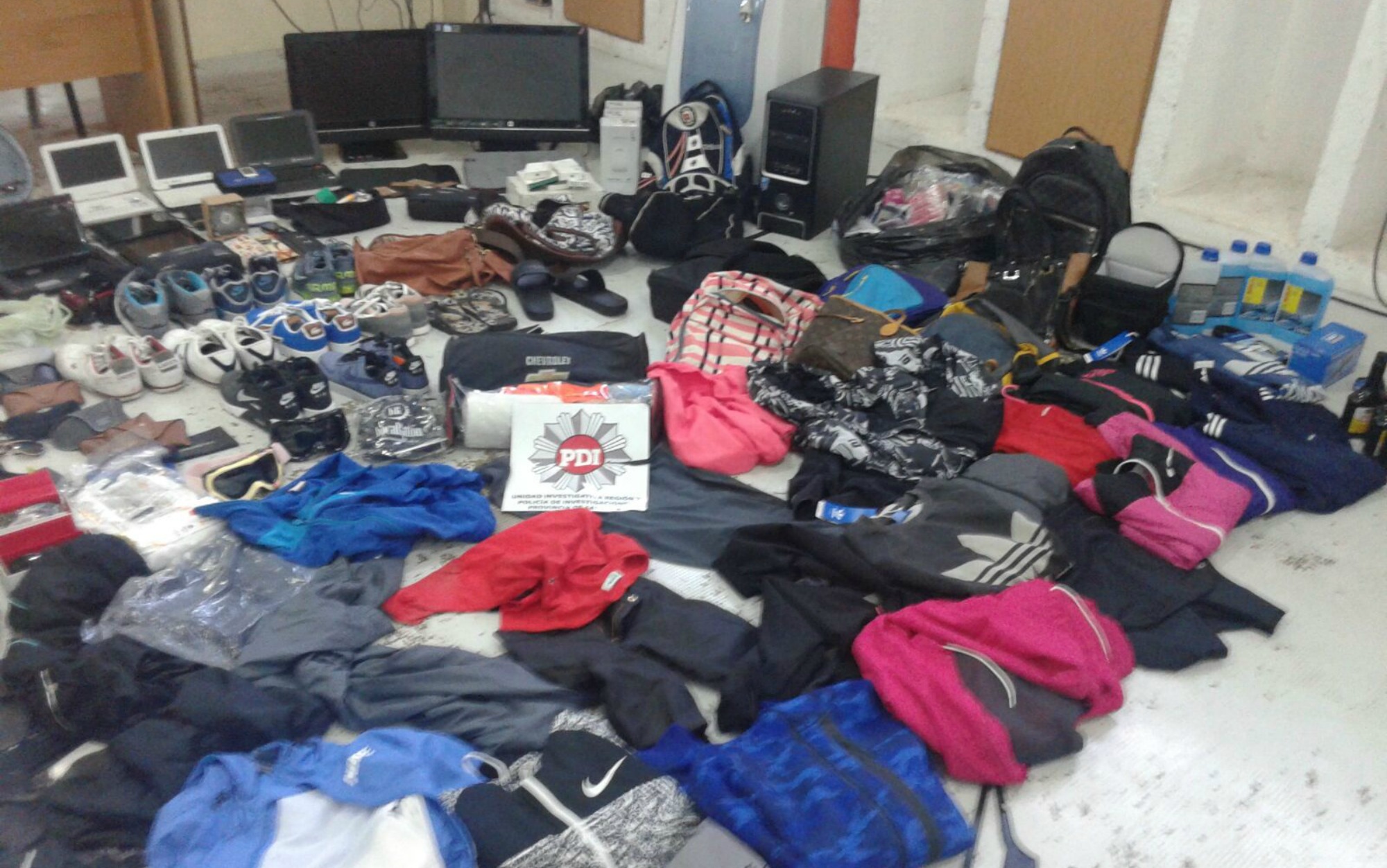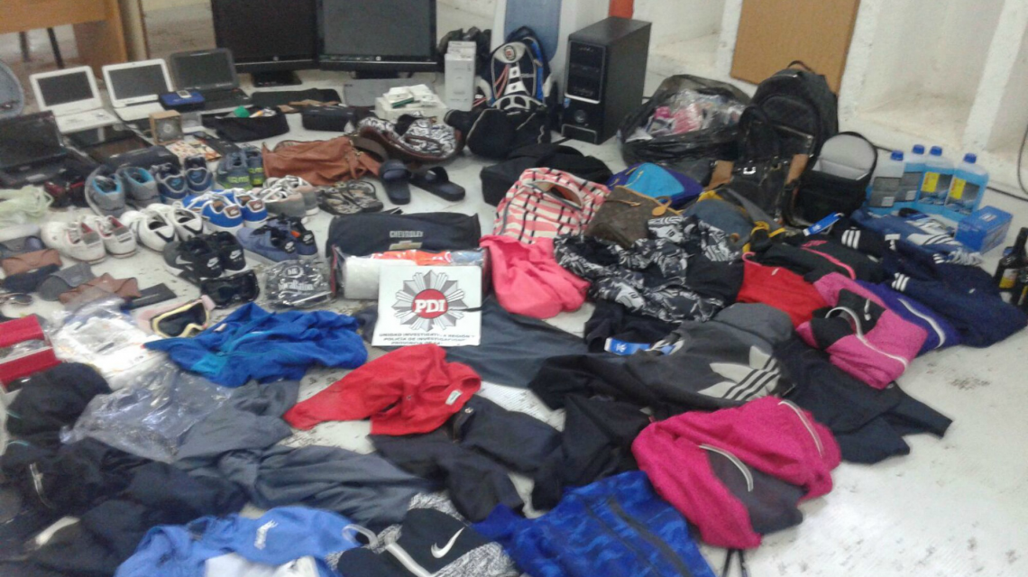 Tras las tareas de inteligencia e investigación realizadas por PDI, este miércoles se llevaron adelante los allanamientos y se secuestró una gran cantidad de elementos que serían robados. Entre los mismos se contabilizan herramientas de trabajo, dispositivos electrónicos, indumentaria para adultos y niños, calzado, computadoras, teléfonos celulares, accesorios para mujeres de distinto tipo, dinero en efectivo y vehículos, entre otros.