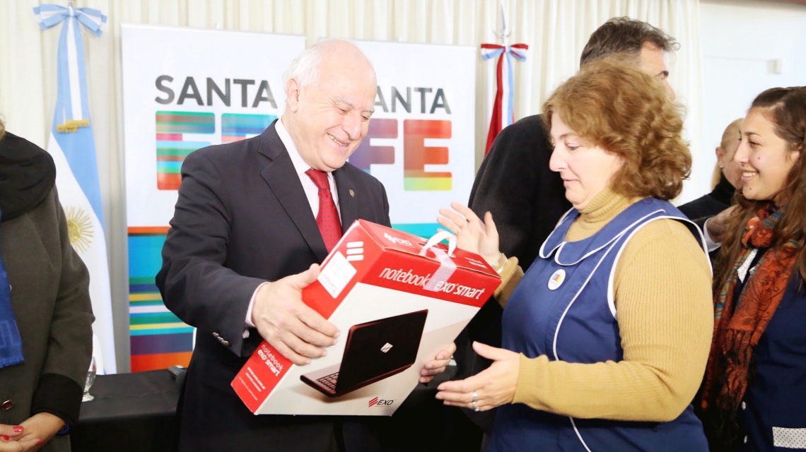 El gobernador de Santa Fe, Miguel Lifschitz, y la ministra de Educación, Claudia Balagué, entregaron este martes en Rafaela kits tecnológicos para siete jardines de infantes de la provincia, para la puesta en marcha del programa “Tramas Digitales” en Educación Inicial en estos establecimientos educativos.