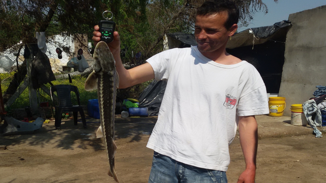 La especie exótica, del orden acipenseriformes “esturiones”, perteneciente a un antiguo linaje de peces, habita aguas marinas y continentales. Estos peces se distinguen por la presencia de un hocico muy pronunciado, cinco líneas de placas cubriendo parte del cuerpo y una boca protráctil en posición ventral; comen en el fondo -bentófagos- y pueden alcanzar los dos metros de largo.