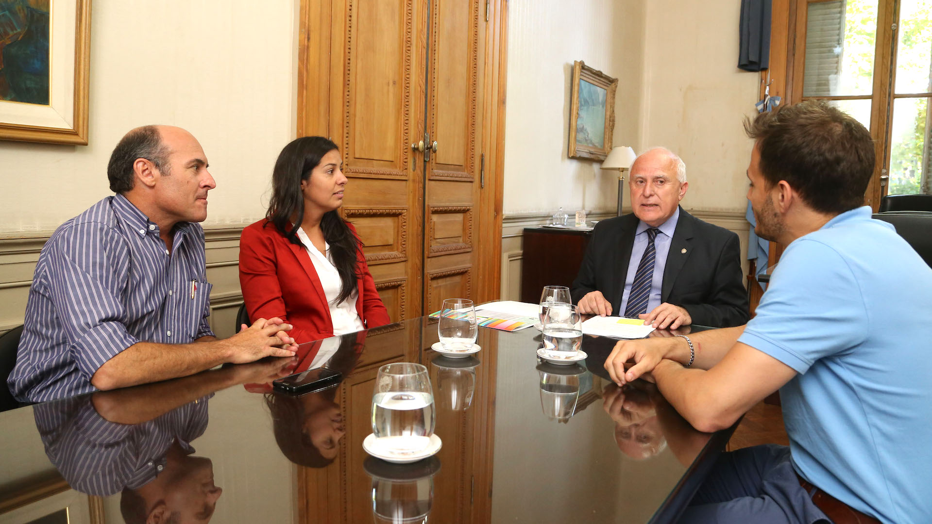 Del encuentro, desarrollado en la sede de Gobierno en Rosario, participaron, también, el secretario de Desarrollo Territorial del Ministerio de Desarrollo Social, Jorge Elder, y los responsables de la organización, Luz Amuchástegui y Mario Raimondi entre otros.