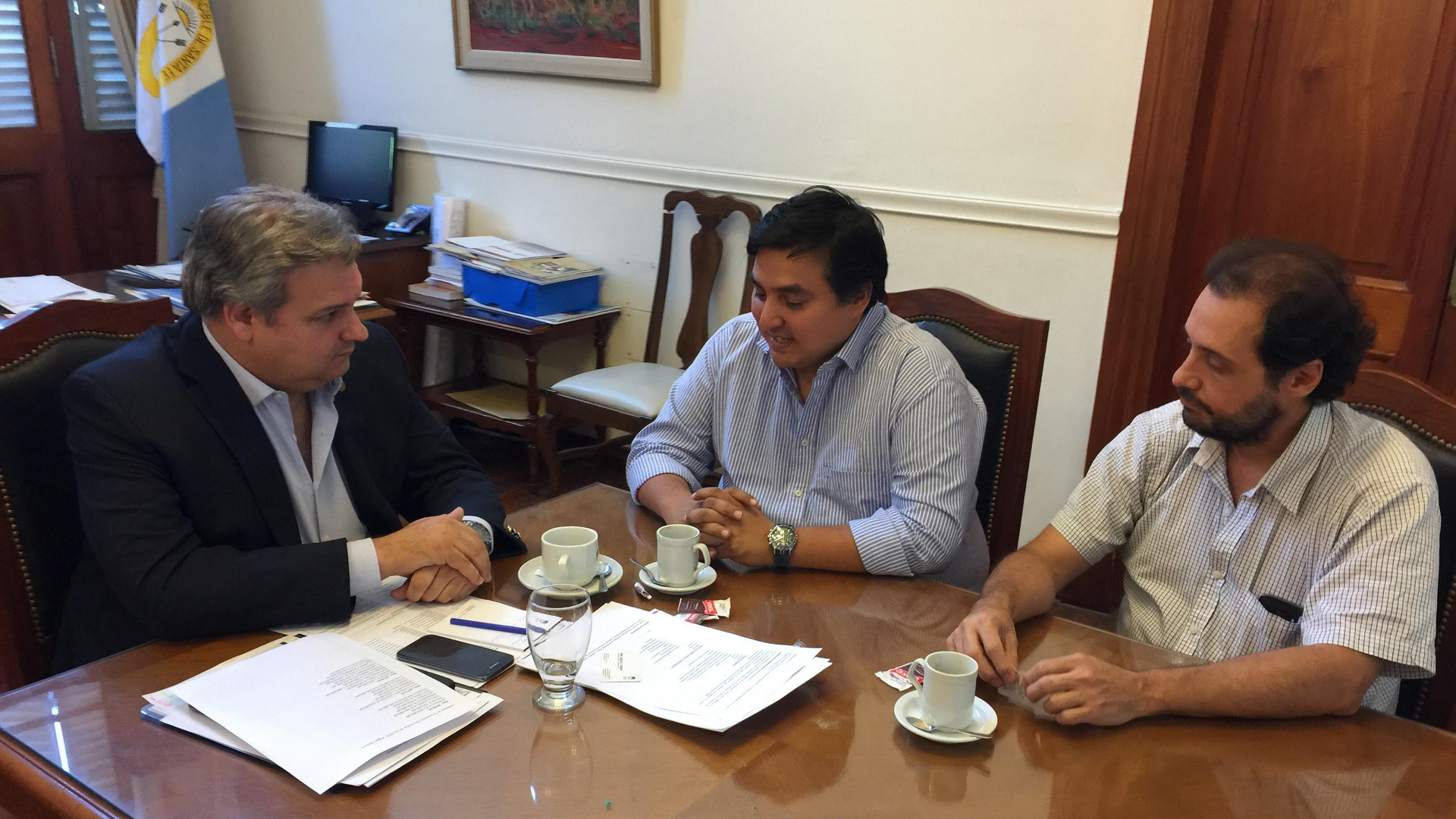 El ministro de Gobierno y Reforma del Estado, Pablo Farías, recibió este miércoles al periodista Rodrigo Villarreal, quien sufriera acciones intimidatorias en la cochera donde guarda su vehículo personal.