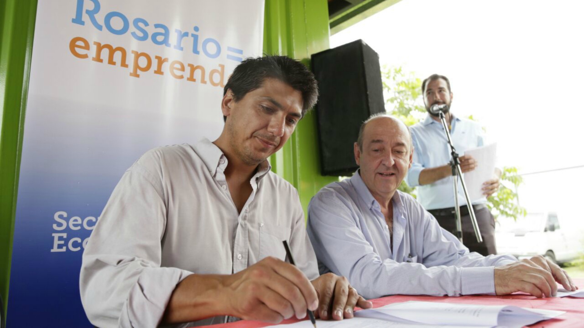El ministro de Desarrollo Social, Jorge Alvarez, entregó este viernes un aporte en el marco del “Plan Operativo de Acción” para la Economía Social de 1.010.985 pesos, que será destinado al “Programa Rosario Emprende”. El aporte fue recibido por el al titular de la Secretaría de Economía Social de la Municipalidad de Rosario, Nicolás Gianelloni, en un acto desarrollado en el Parque Huerta “El Bosque de los Constituyentes”, de la zona noroeste de esa ciudad.