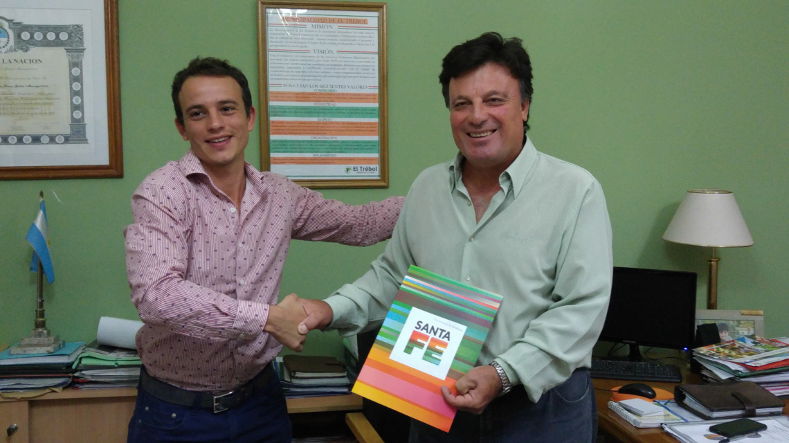 En un acto realizado este martes en el edificio municipal de El Trébol, los subsecretarios de Coordinación del Ministerio de Gobierno y Reforma del Estado, Luciano Caturelli; y de Regiones, Municipios y Comunas, Lisandro D’Anna, entregaron al intendente de esa ciudad, Fernando Almada, $ 1.698.564 correspondientes al período 2015-2016 que serán destinados a complementar gastos de repavimentación del acceso Eva Perón, obra que el municipio inició con fondos propios. Asimismo, cuando se certifique el avance de los trabajos se realizará otro desembolso de $1.132.376.