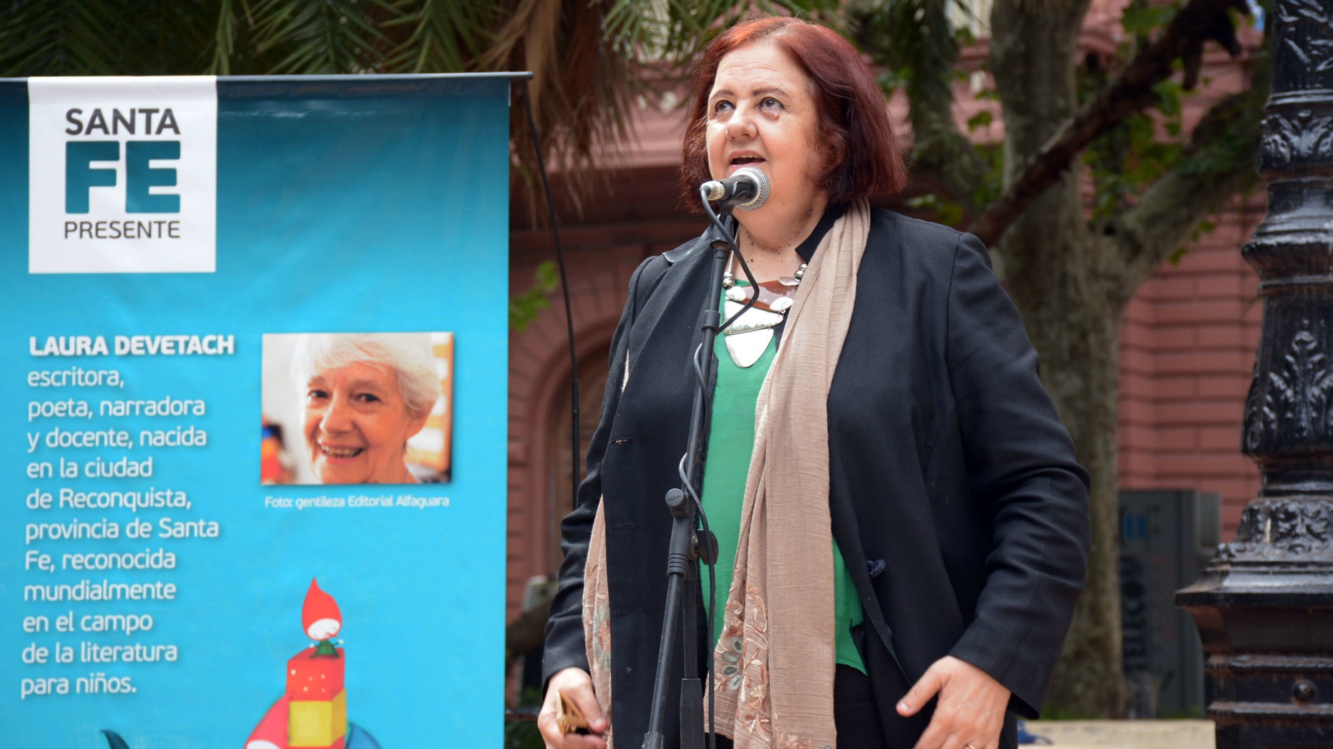 Por su parte, González manifestó que “este acto, entrañable, en el lugar de las madres de Plaza de Mayo está defendiendo los derechos humanos a la autoría intelectual, a los artistas desaparecidos, perseguidos, a las palabras calladas, a la imaginación que te ayuda a reconciliarte con el mundo y a transformarlo. Laura Devetach defiende la escuela pública y fue perseguida por estos cuentos, por pensar en el otro, por hablarles a los chicos de los contextos sociales y políticos, por soñar y desear”.