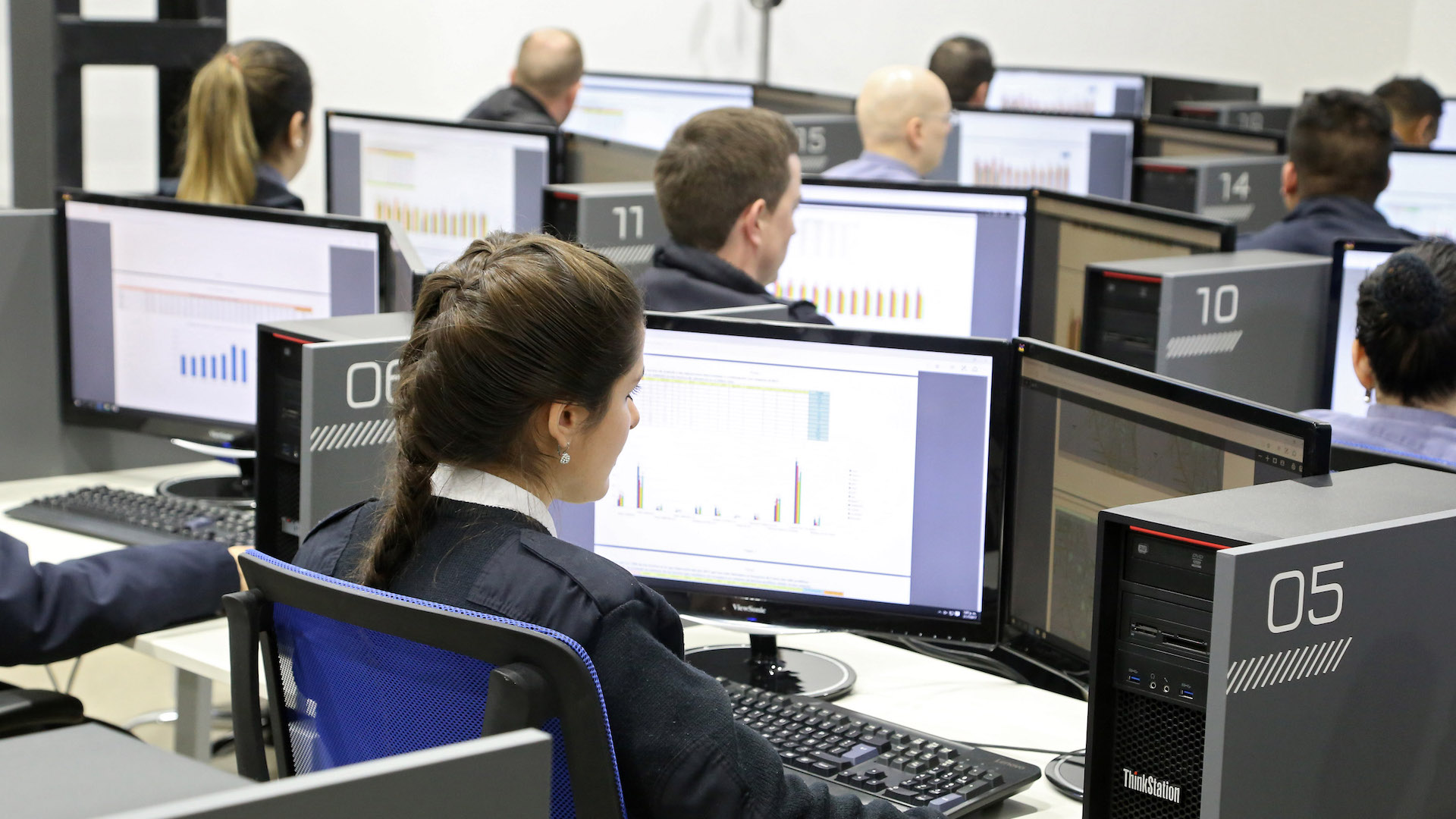 Sobre un pasillo de la planta baja, se montaron boxes individuales y privados con el software i2 para cruzar bases de datos. Incluye todas las fuentes del Ministerio de Seguridad más otras como API, Catastro y de bases de datos nacionales.