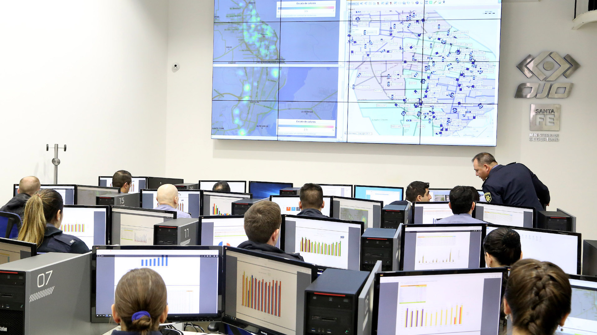 El gobernador de Santa Fe, Miguel Lifschitz inauguró este viernes en Rosario la nueva Central de Procesamiento de Información para la prevención del delito, denominada “OJO”, que está coordinada con el servicio del 911, y cuenta con 19 computadoras con doble pantalla que muestran en vivo mapas con las zonas calientes de la ciudad, la distribución de patrulleros y los videos tomados por las cámaras de seguridad.