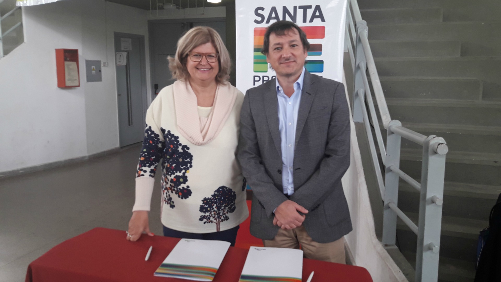 En el acto, que se desarrolló en el gimnasio de la Escuela Normal Superior Nº 32 de Santa Fe (Saaveda 1751), donde se exponen los proyectos hasta este viernes, se formalizó el convenio de colaboración entre el Ministerio de Educación de Santa Fe y la Organización de Estados Iberoamericanos, a través de la ministra Balagué y el director de la Oficina Región Buenos Aires de la OEI, Andrés Delich.