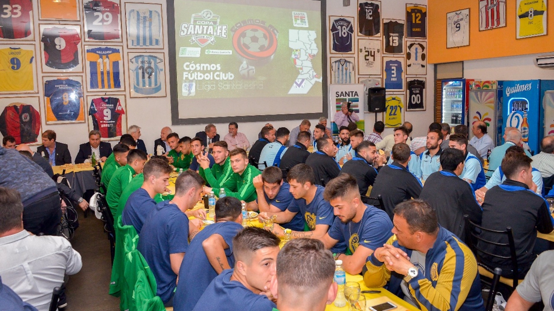El gobernador de Santa Fe, Miguel Lifschitz, compartió este jueves una cena de camaradería con los planteles de los clubes Rosario Central y Atlético de Rafaela, en la previa de la final de Copa Santa Fe de Fútbol que se disputa este viernes en el Gigante de Arroyito.