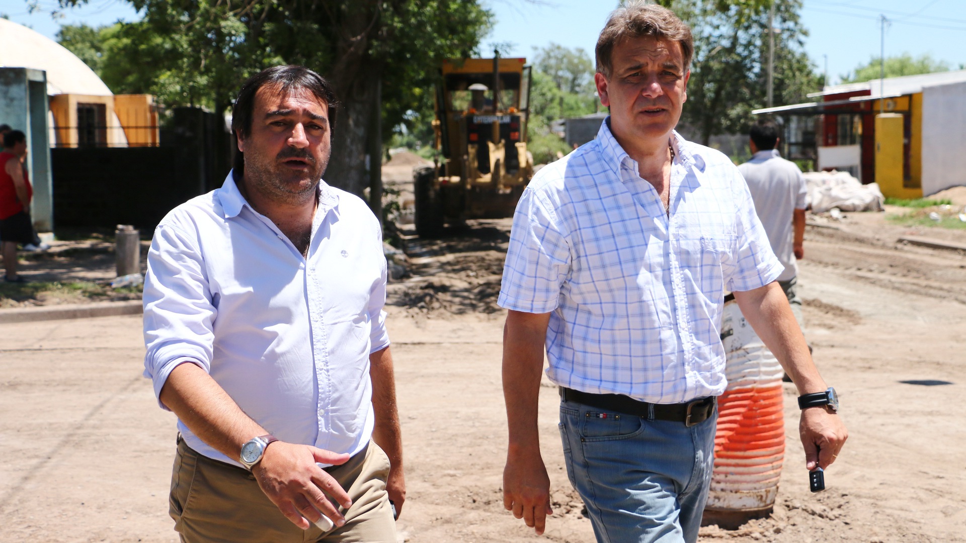 El secretario de Estado del Hábitat, Diego Leone, y el intendente de Firmat, Leonel Maximino, recorrieron este jueves las obras de mejoramiento del barrio Fredriksson de esa ciudad, que beneficiarán a unos 2000 vecinos.