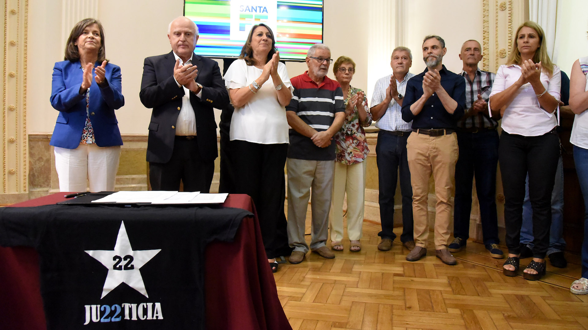Del acto participaron también la intendente de Rosario, Mónica Fein; la ministra de Innovación y Cultura, María de los Ángeles González; el senador departamental Miguel Ángel Capiello; el exgobernador Hermes Binner; la presidenta del Colegio de Arquitectos de la Provincia de Santa Fe Distrito 2 Rosario, Irene Pereyra; y familiares de las víctimas de calle Salta.