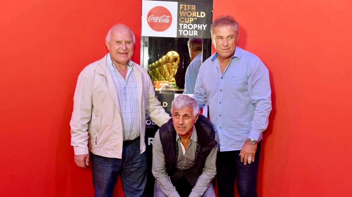 En la presentación de la Copa -de seis kilos de peso y construida en oro 18 quilates-, estuvieron varios exjugadores campeones del mundo de 1978 y 1986, como Daniel Bertoni, Julio Villa, Alberto Tarantini, Jorge Burruchaga, Nery Pumpido, Héctor Enrique, Ricardo Giusti, José Luis Brown y, además, un argentino campeón pero con la camiseta de Francia, David Trezeguet, entre otros.