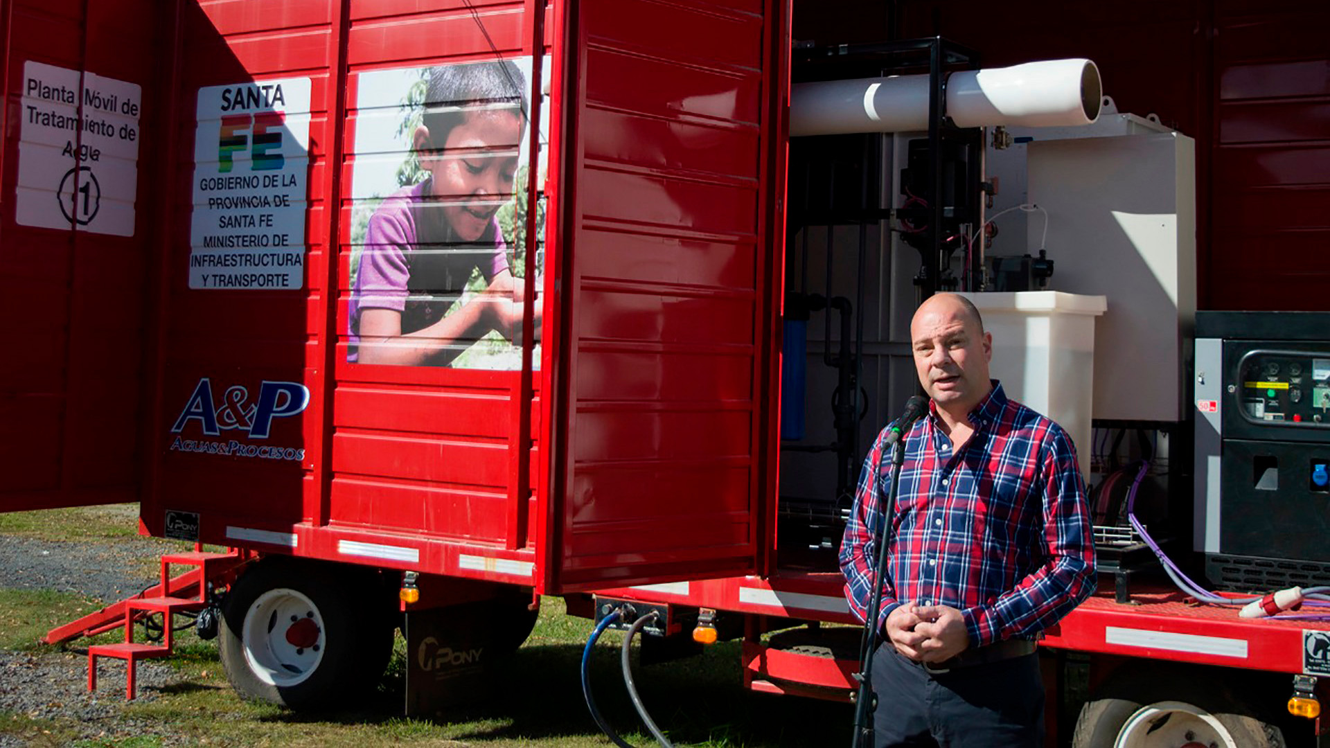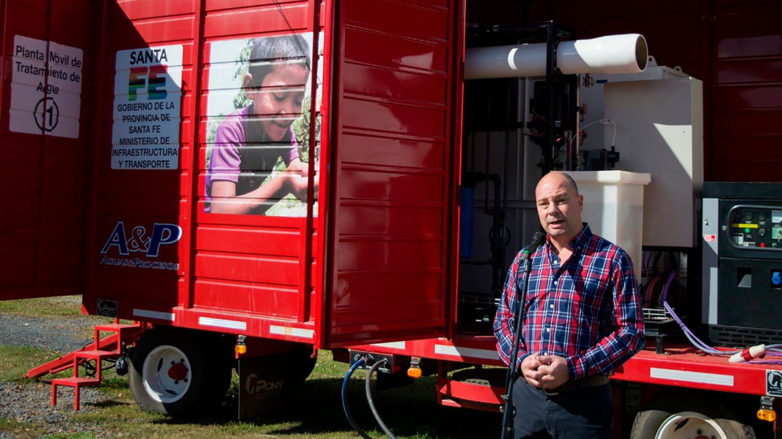 El subsecretario de Gestión Territorial, Marcelo Airaldo, encabezó este miércoles en el barrio La Carolina de la localidad de Alvear (departamento Rosario), la instalación y puesta en marcha de la planta potabilizadora móvil que garantizará agua de calidad a más de 2000 vecinos.