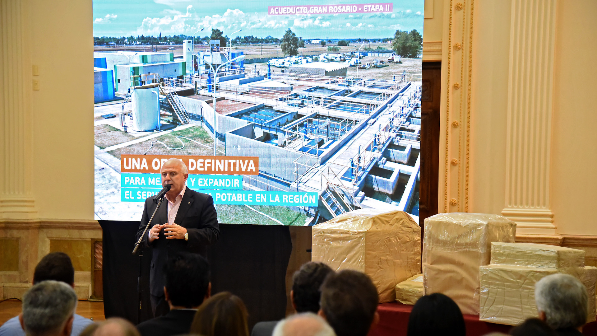 “Esta obra es un desafío técnico y una gran trabajo de ingeniería que implica la ampliación de la planta potabilizadora con un nuevo módulo en Granadero Baigorria y un acueducto que va paralelo a la Avenida Circunvalación hasta Provincias Unidas y reforzará todo el sistema de provisión para Rosario. Así, mejorará prácticamente en su totalidad la situación de los barrios que tienen dificultades e incluso mejorará hacia el sur la provisión a Villa Gobernador Gálvez y, por otro lado, permitirá la conexión a ciudades como Pérez, Ibarlucea y Roldán que hoy tienen serias dificultades. Además, abastecerá con el agua suficiente al acueducto San Lorenzo, actualmente en marcha, que llega hasta dicha ciudad y permite mejorar toda la provisión al cordón”, indicó Lifschitz.