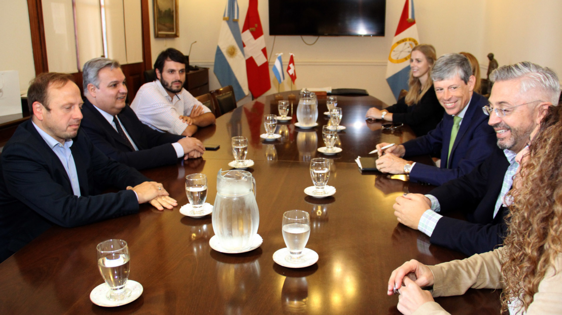 El ministro de Gobierno y Reforma del Estado, Pablo Farías, recibió este miércoles al embajador de Suiza en Argentina, Heinrich Schellenberg. El objetivo del encuentro fue avanzar sobre el trabajo que realiza la fundación suiza Es Vicis con la comuna de Colonia Belgrano para construir viviendas.