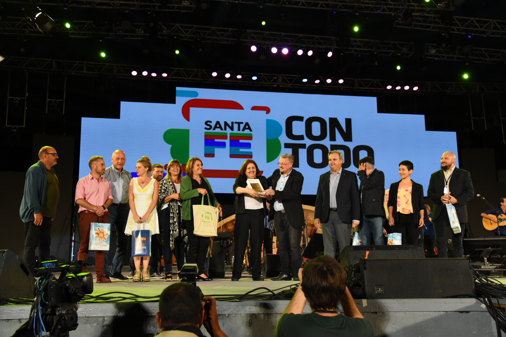 "Hoy Santa Fe engalana el escenario, como lo ha hecho otros años, con artistas de nuestra provincia. Hoy, La Trova Rosarina que para nosotros ya es santafesina, representa a Santa Fe con grandes figuras y artistas", indicó Farías.