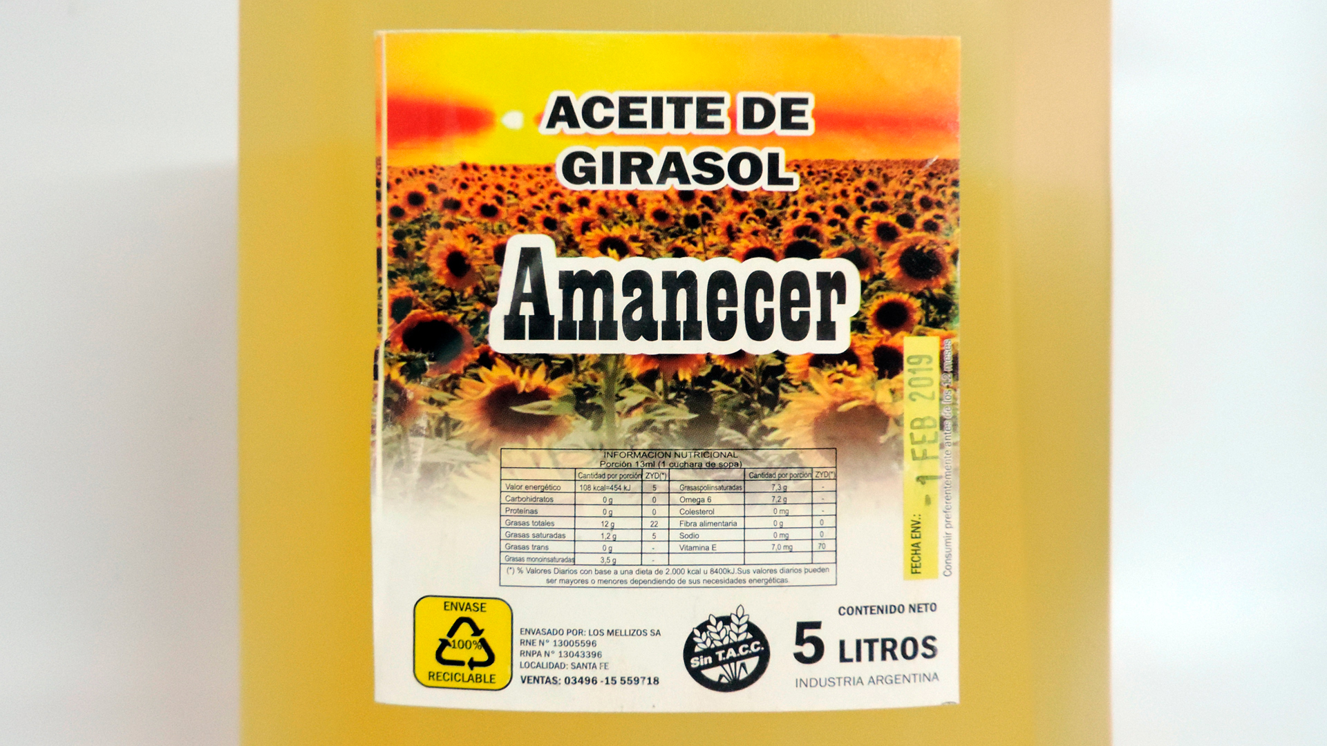 Rotulado como: aceite de girasol