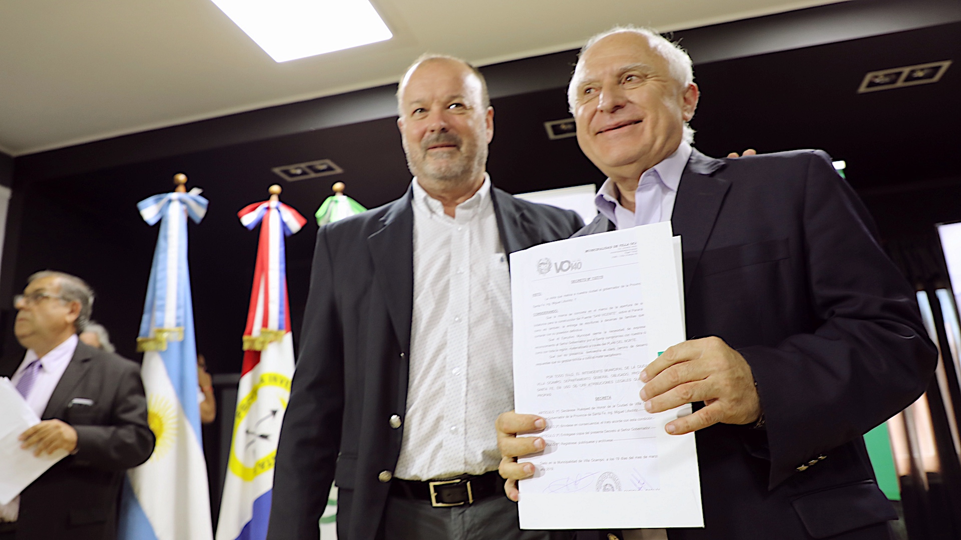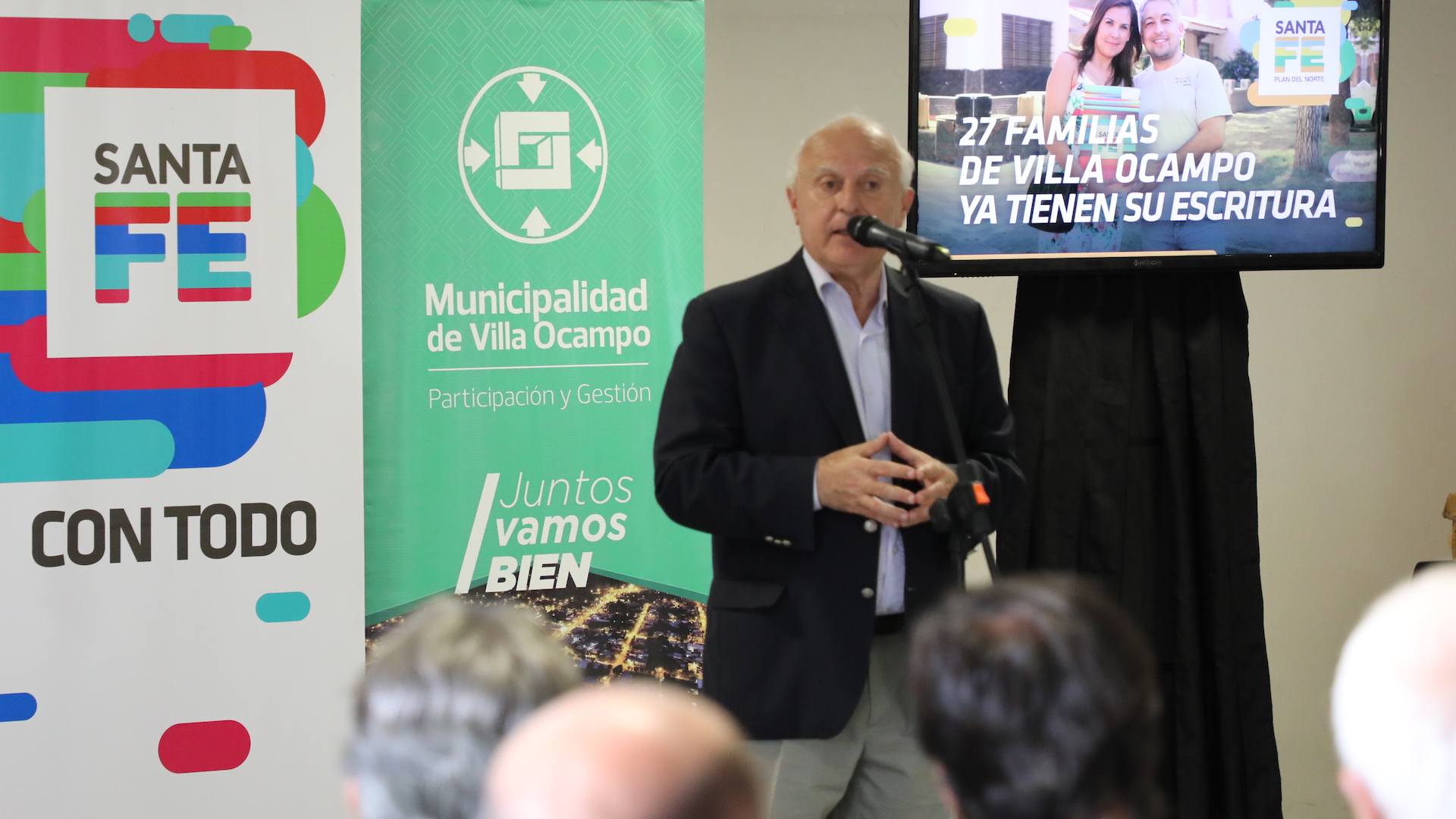Posteriormente, Lifschitz se dirigió al Centro de Empleados de Comercio de Villa Ocampo donde hizo entrega de 27 escrituras y tres anticipos financieros para poner en marcha nuevas viviendas.