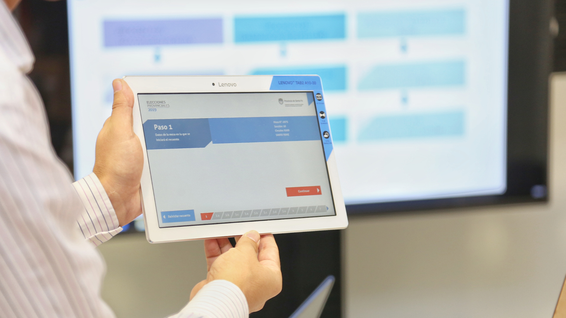 “El proceso se va a aplicar únicamente en las ciudades de Rosario y Santa Fe. La Cámara Nacional Electoral, que participó de la prueba realizada en 2017, nos dio el visto bueno para aplicarla en 2019”, relató. Acto seguido, explicó la metodología: “Se coloca un celular dentro de un atril, de manera que se puede actualizar el escaneo de pagina de forma mucho más eficiente, disminuyendo el margen de error”.