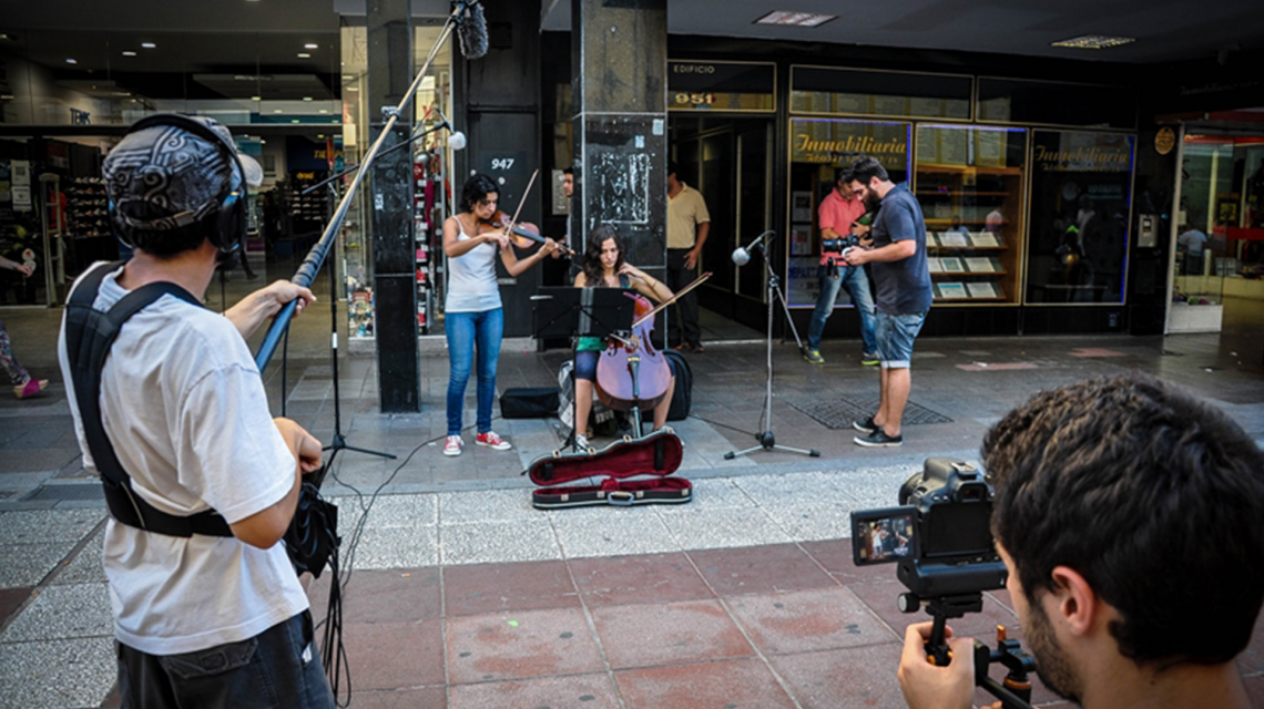 << “Canción de la ciudad”: es una serie web documental filmada en 2014 y dirigida por Patricio Irisarri, que reflexiona sobre aspectos sociales en torno a la producción musical que se da en las calles de Rosario con el fenómeno de apropiación y resignificación del espacio público mediante la intervención sonora y performática de lo urbano. El documental da relevancia, visibilidad e impulso a los músicos callejeros en una convergencia entre lo narrativo y lo productivo de lo musical. Al mismo tiempo busca problematizar la poética de la calle que se trastoca con la intervención de los artistas, abordada y representada de manera audiovisual, dramática y multisoporte, en un cruce entre entornos urbanos comunes y escenarios digitales de circulación y participación.