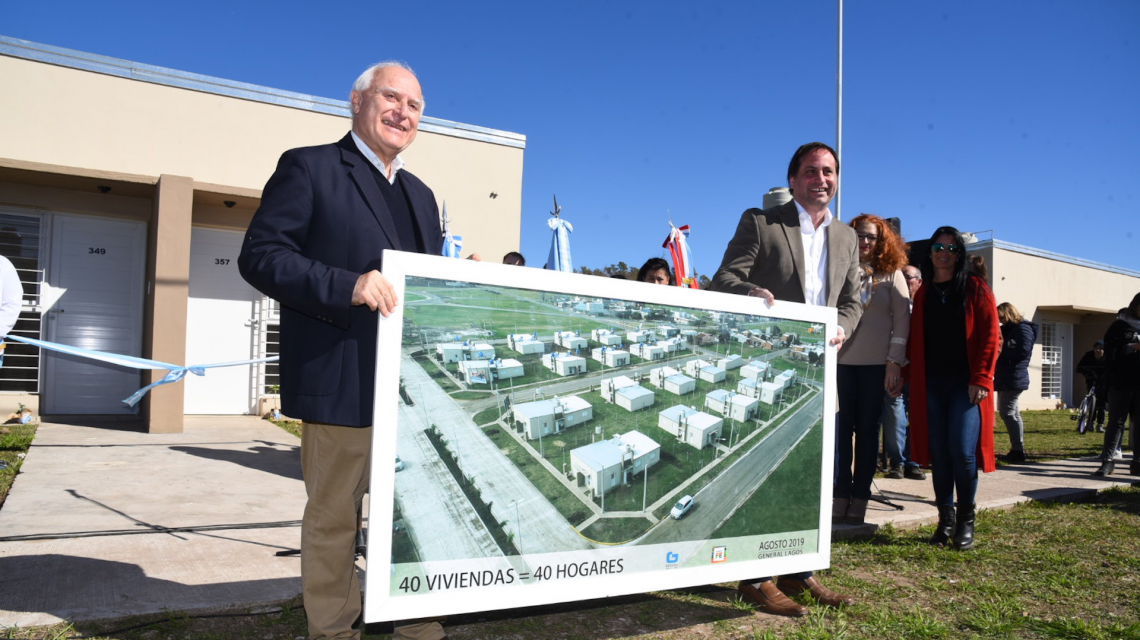 El gobernador Miguel Lifschitz, junto al secretario de Estado del Hábitat, Diego Leone, entregó este viernes 40 viviendas en el barrio La Rotonda, a familias de la localidad de General Lagos