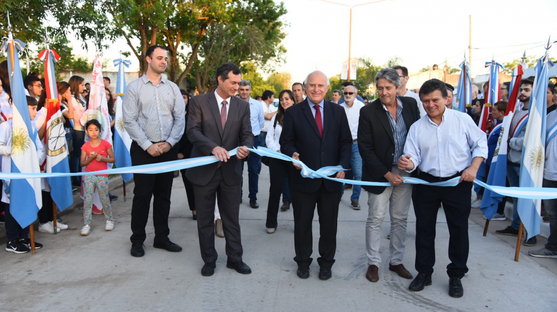 El gobernador Miguel Lifschitz, junto al ministro de Infraestructura y Transporte, José Garibay, inauguró este miércoles la obra de pavimentación del bulevar Villa María, de la ciudad de Armstrong.