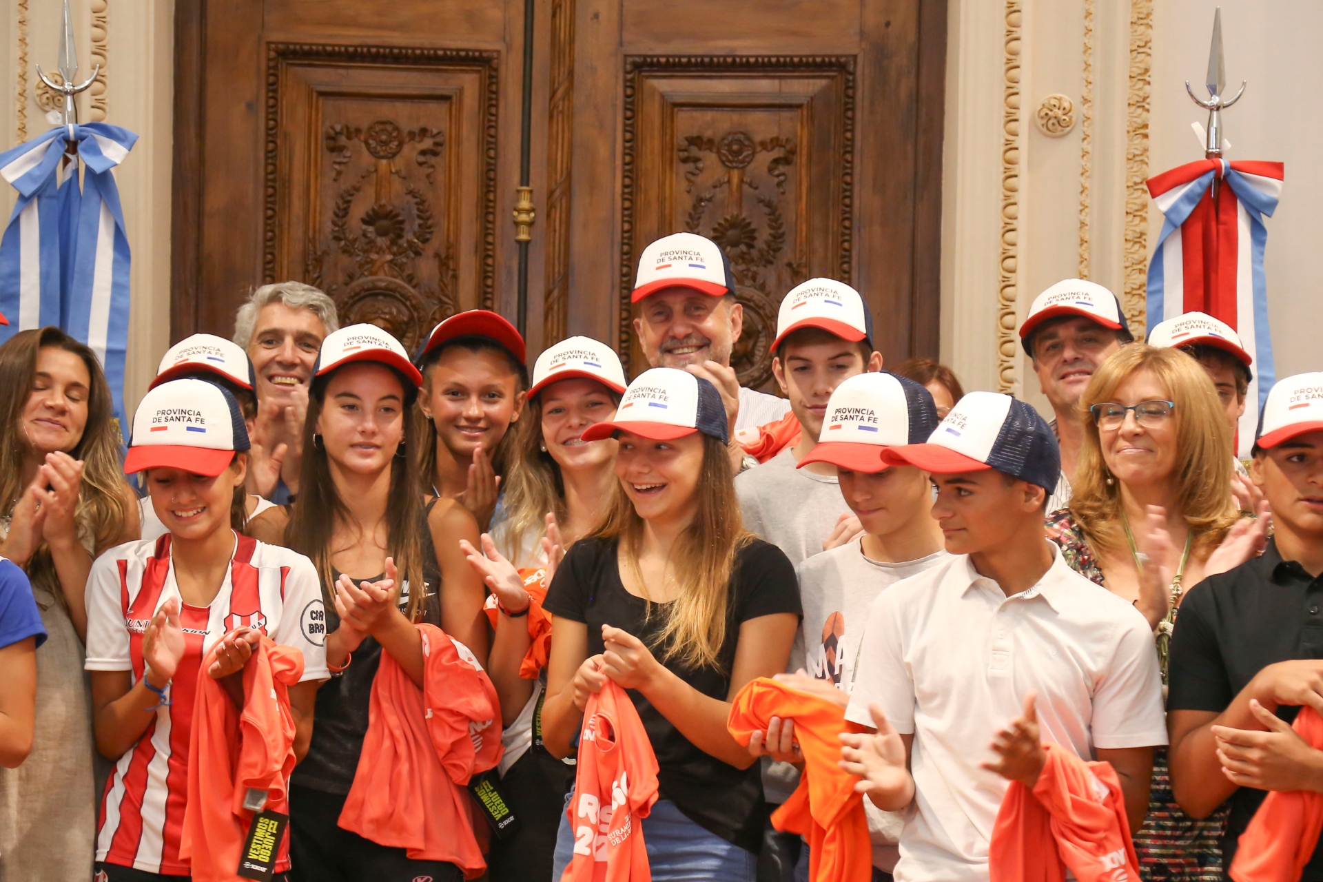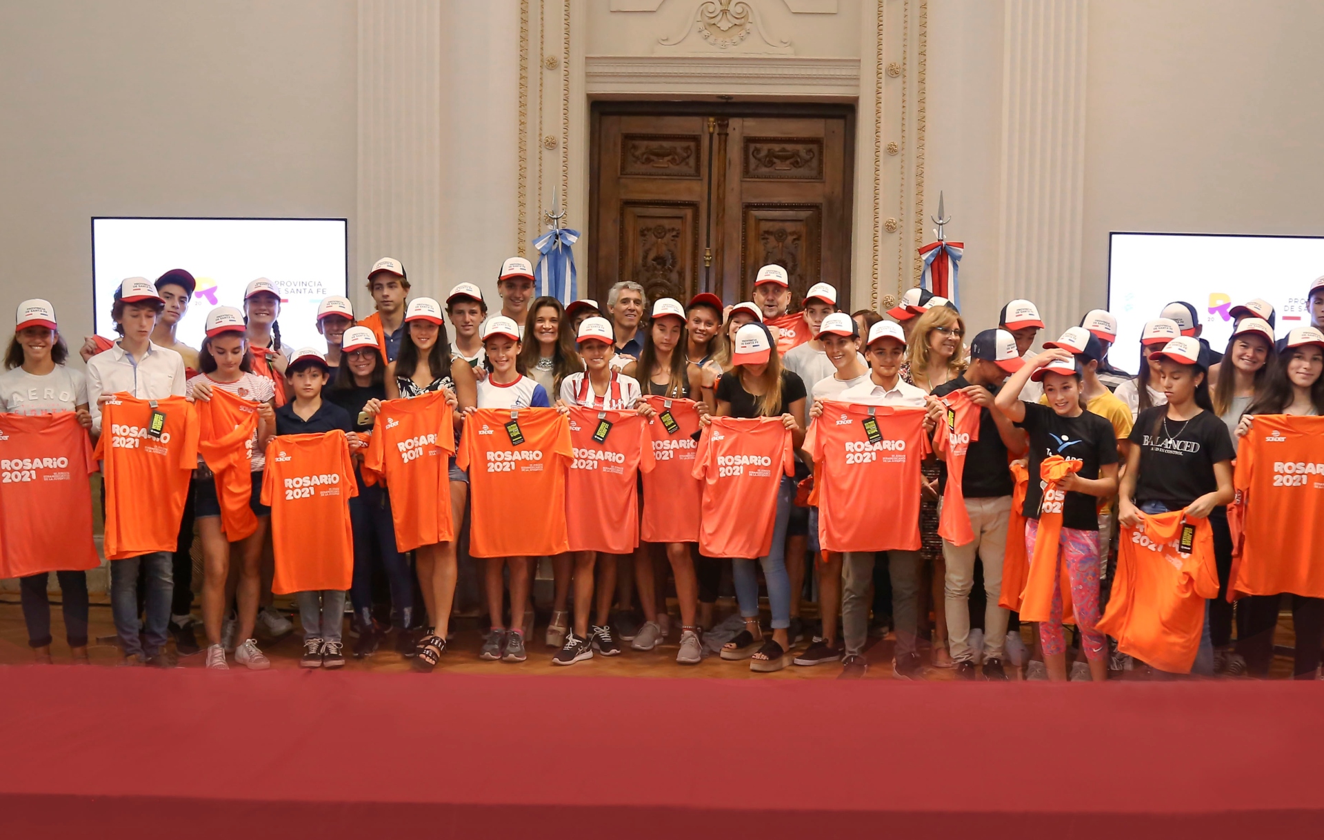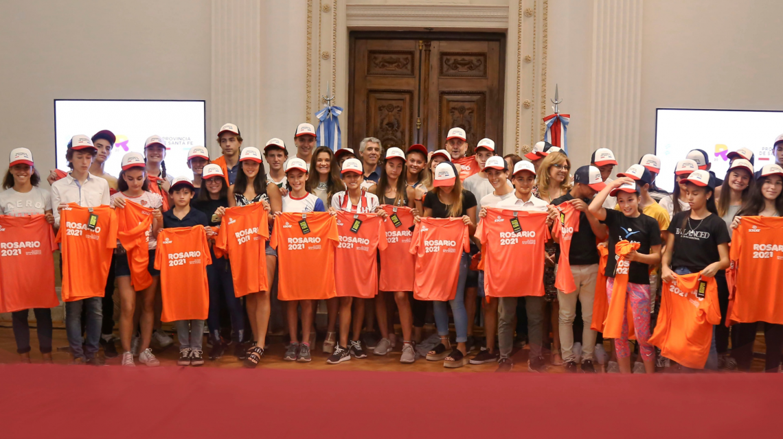 El gobernador de la provincia, Omar Perotti, junto a la secretaria de Deportes, Claudia Giaccone realizaron un reconocimiento a los deportistas santafesinos que fueron convocados al Campus YOG Dakar 2022. La actividad, de la que también participaron el ministro de Desarrollo Social, Danilo Capitani y el secretario de Deportes de la municipalidad de Rosario, Adrian Ghiglione, se llevó a cabo en la sede de Gobierno de Rosario.