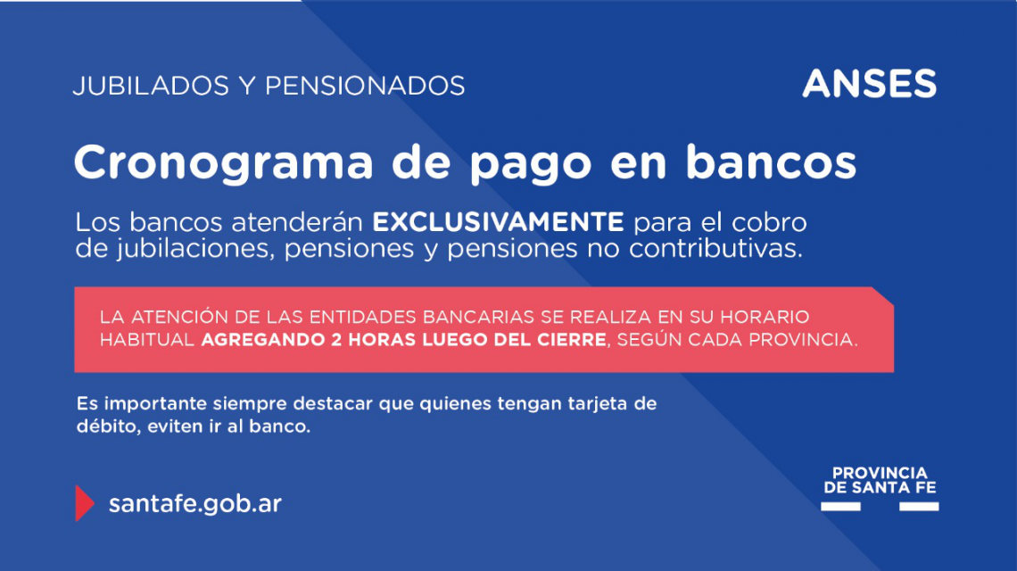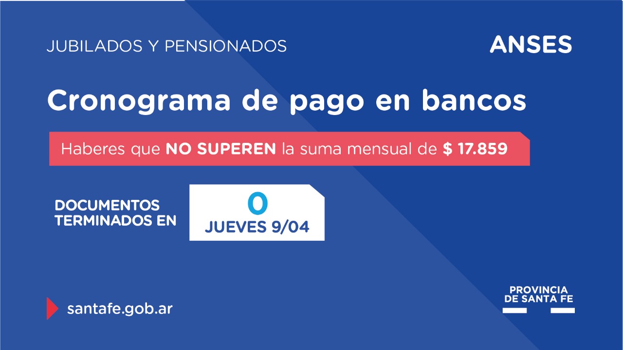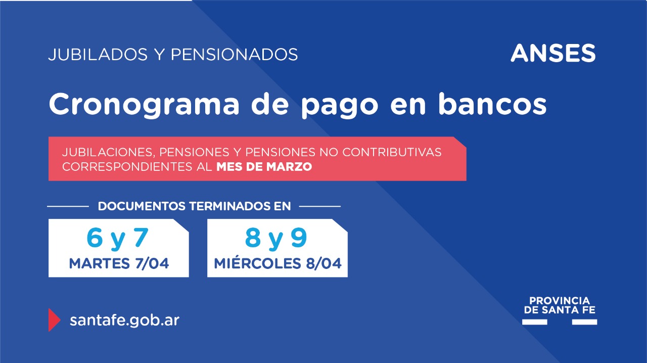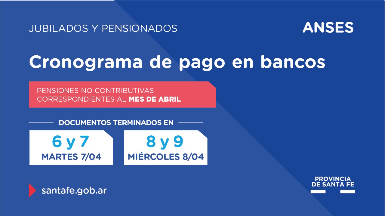 En relación a las pensiones no contributivas correspondientes al mes de abril, este martes se realizará el pago de los documentos terminados en 6 y 7 y el miércoles los terminados en 8 y 9.