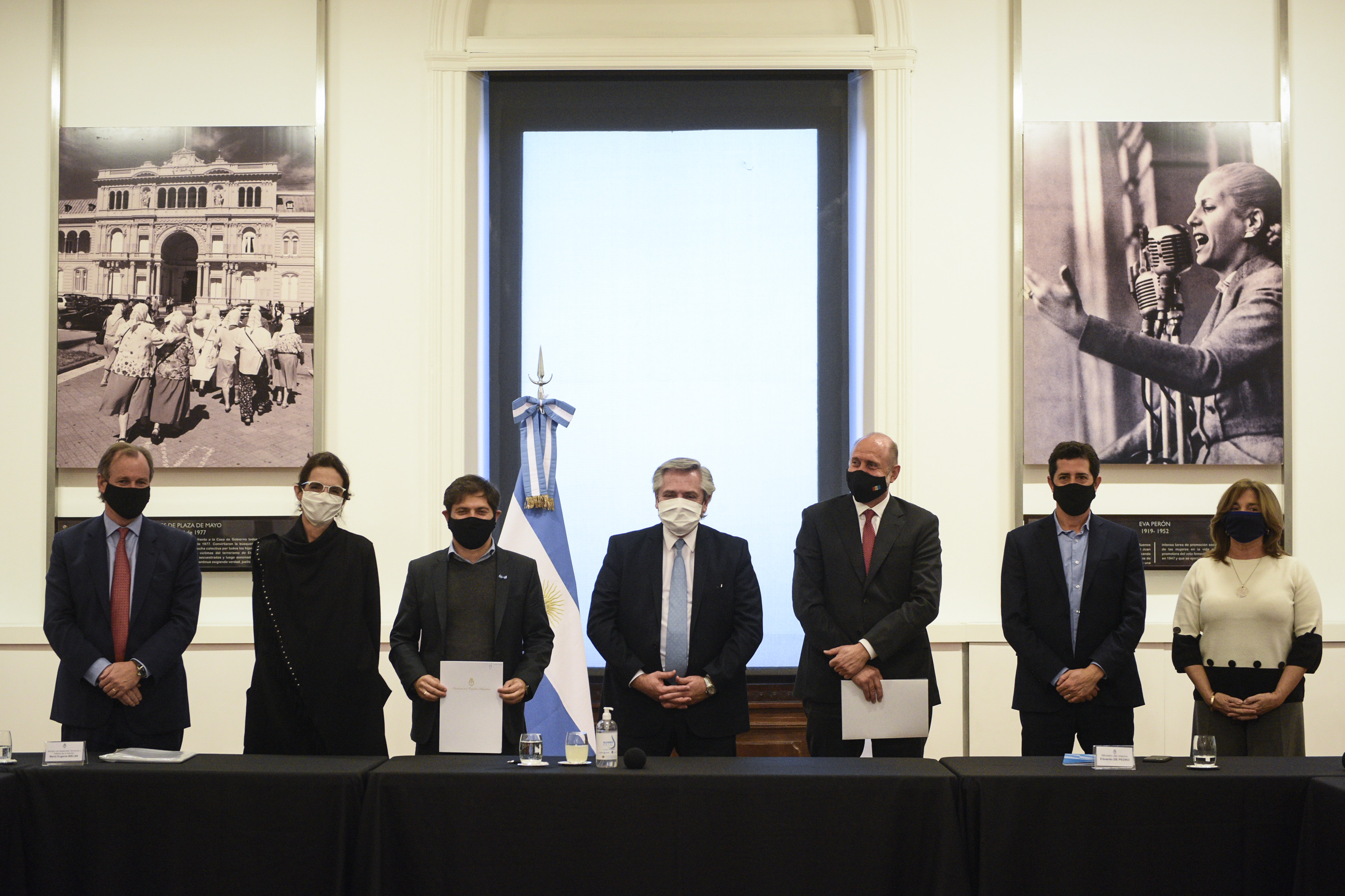 Del evento, que se desarrolló en la Casa Rosada, participaron también el ministro del Interior, Eduardo de Pedro; los gobernadores de Buenos Aires y Entre Rios, Axel Kiciloff y Gustavo Bordet; y la ministra de Infraestructura, Servicios Públicos y Hábitat, Silvina Frana.