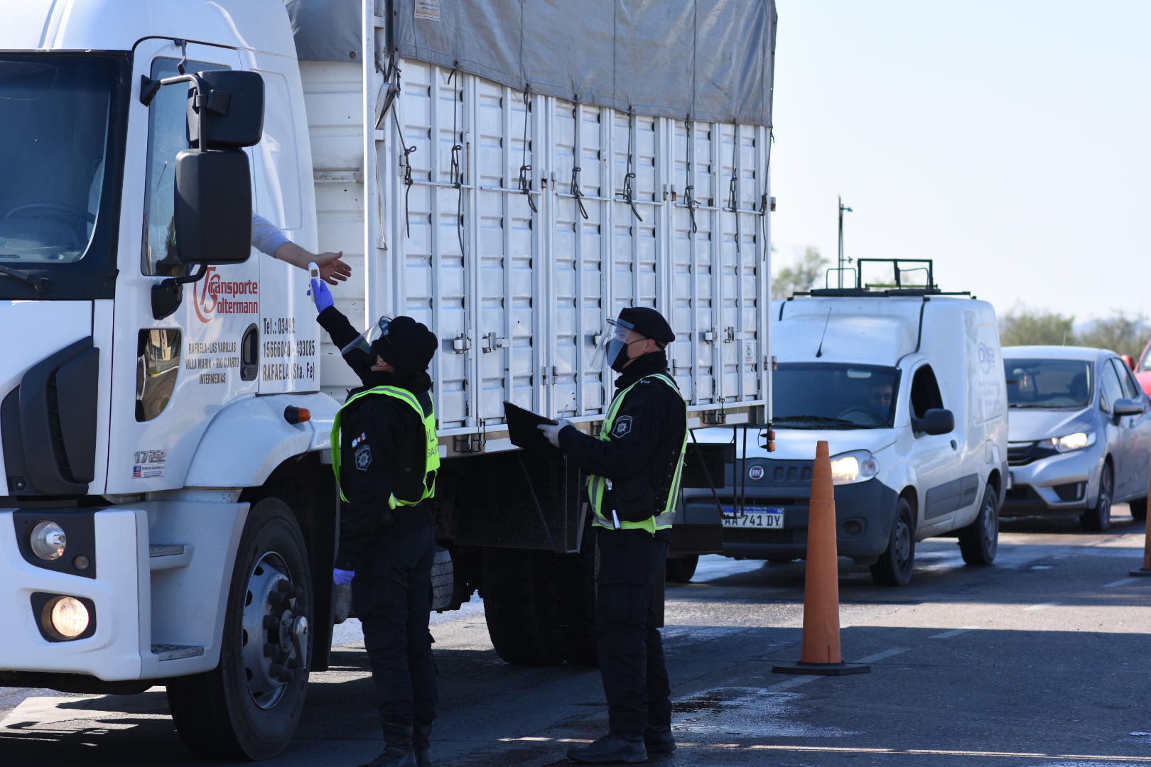 El protocolo de actuación para los puestos sanitarios indica que se debe detener el vehículo, se explica al conductor que se están realizando controles en el marco de la pandemia COVID-19, se le formula verbalmente la pregunta de su estado general de salud y si estuvo enfermo en los últimos 14 días.
