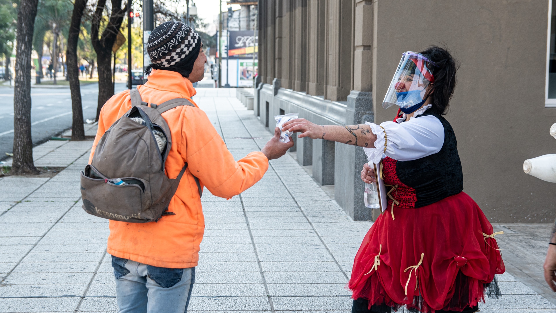 Malabaristas, titiriteros, payasos, zancudos, magos, bailarines y músicos se vistieron de todos los colores para concientizar a la ciudadanía sobre los cuidados y precauciones que hay que tomar frente a la pandemia del Covid-19.