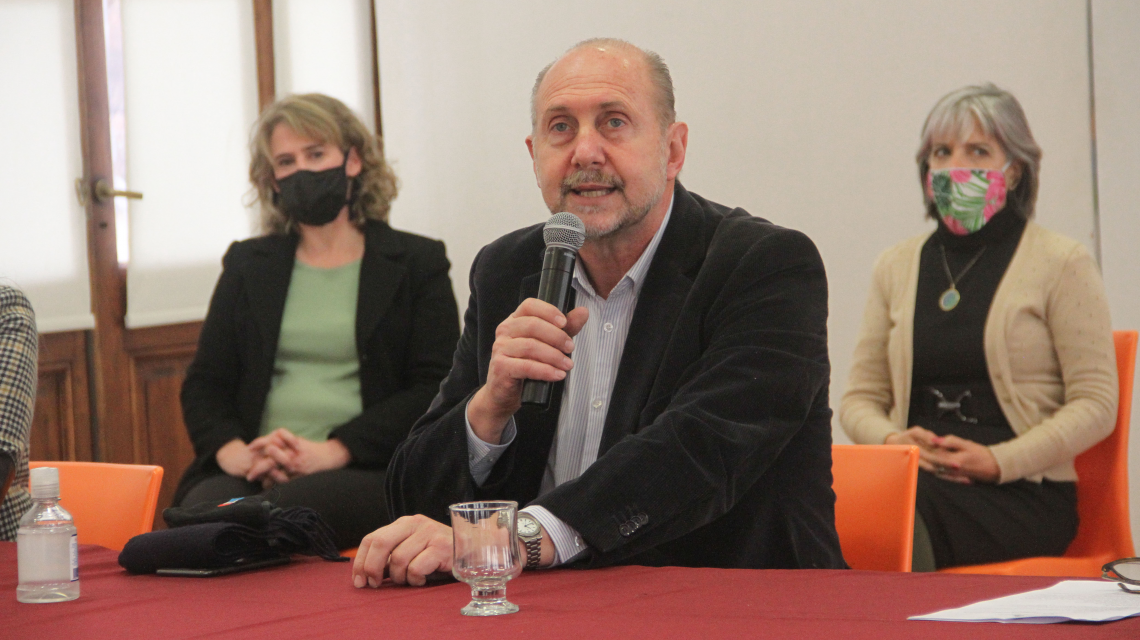 El gobernador de Santa Fe, Omar Perotti, participó esta mañana en la ciudad de Rosario de una videoconferencia con investigadores que recibieron fondos del Consejo Federal de Ciencia y Tecnología (COFECYT).