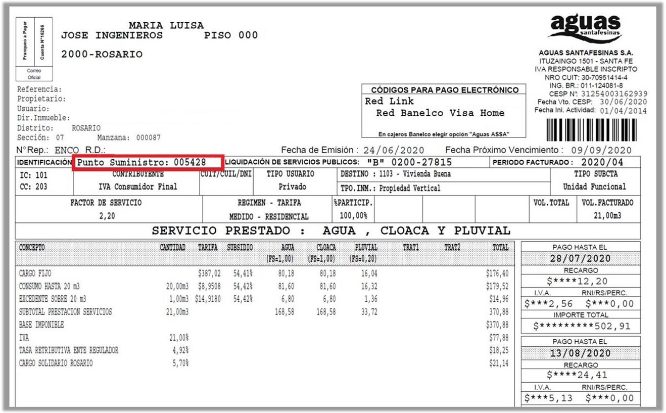 Se solicita por única vez un correo electrónico de contacto con el usuario y el “Punto de Suministro” de inmueble, que está indicado en el sector izquierdo de la factura de servicio de cada usuario.