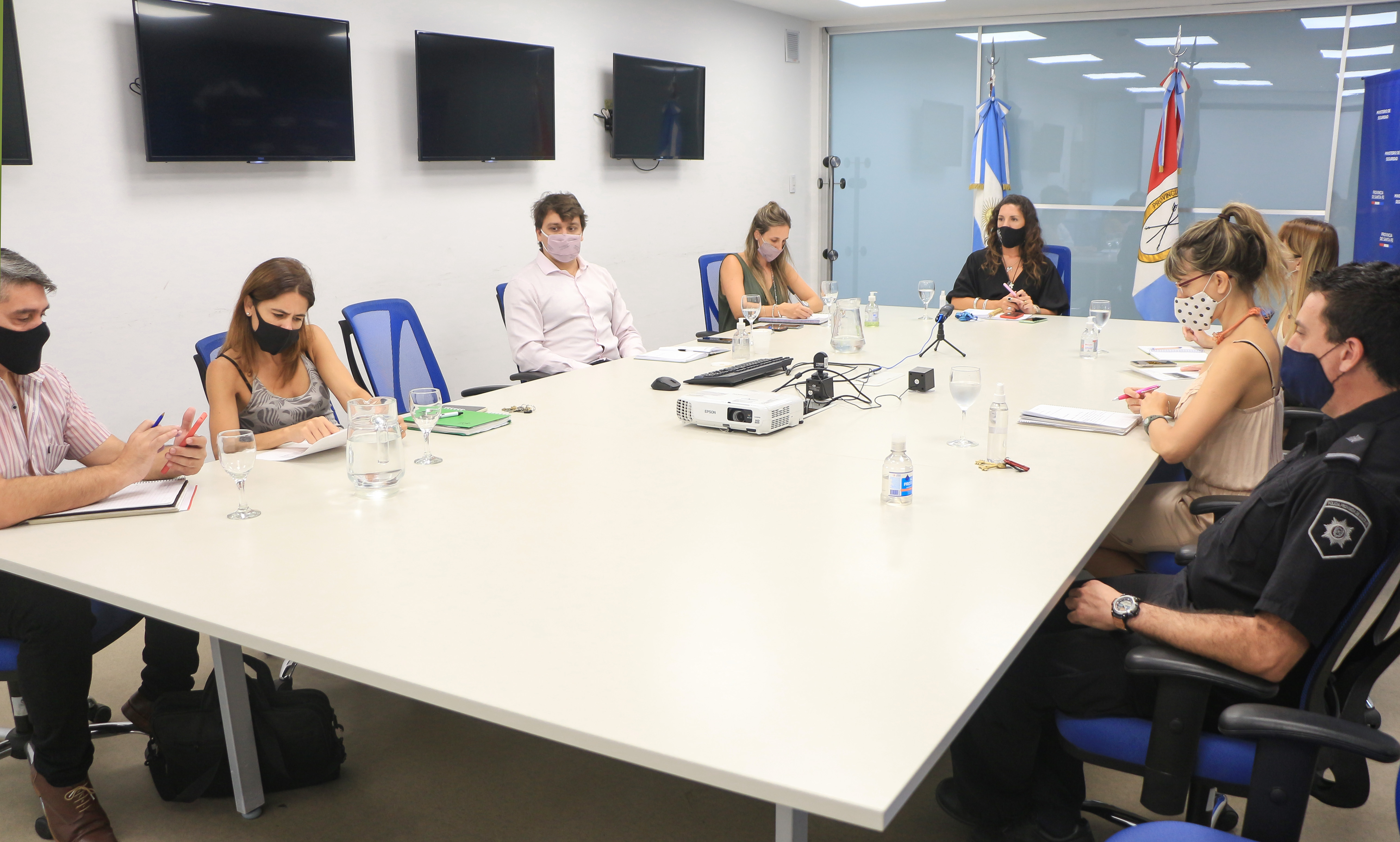 Del encuentro participaron también la secretaria de Control y Convivencia del municipio, Carolina Labayrú; la coordinadora de la Subsecretaría de Desarrollo Territorial y Gobiernos Locales, Daniela Ghiorzi; y el jefe de Planeamiento y Custodias de la policía, Juan José Loyola.